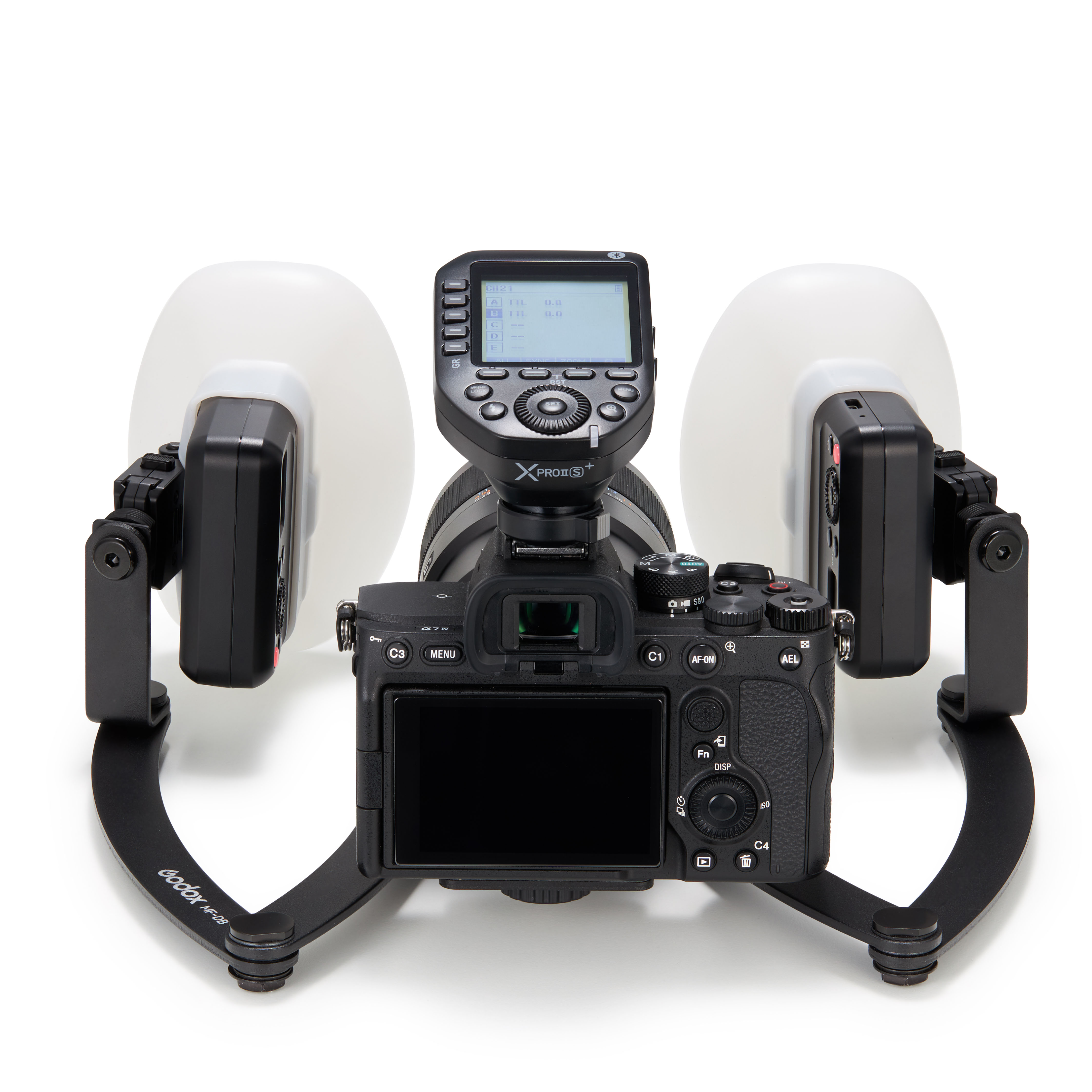 С помощью встроенной системы беспроводного управления Godox 2.4GHz вспышки MF12 могут дистанционно запускаться от синхронизатора Godox XproII S+ для Sony.