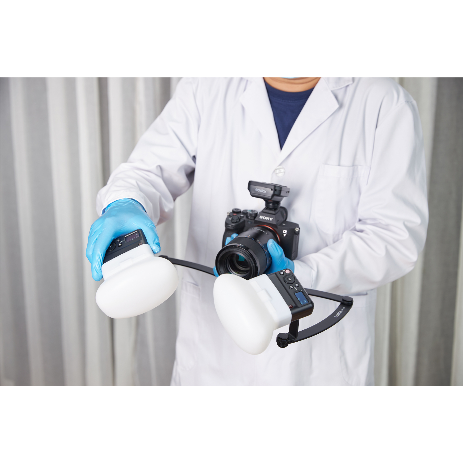 Комплект импульсных осветителей Godox MF12-DK2 создан, чтобы обеспечить равномерное освещение для фотофиксации результата стоматологического лечения.