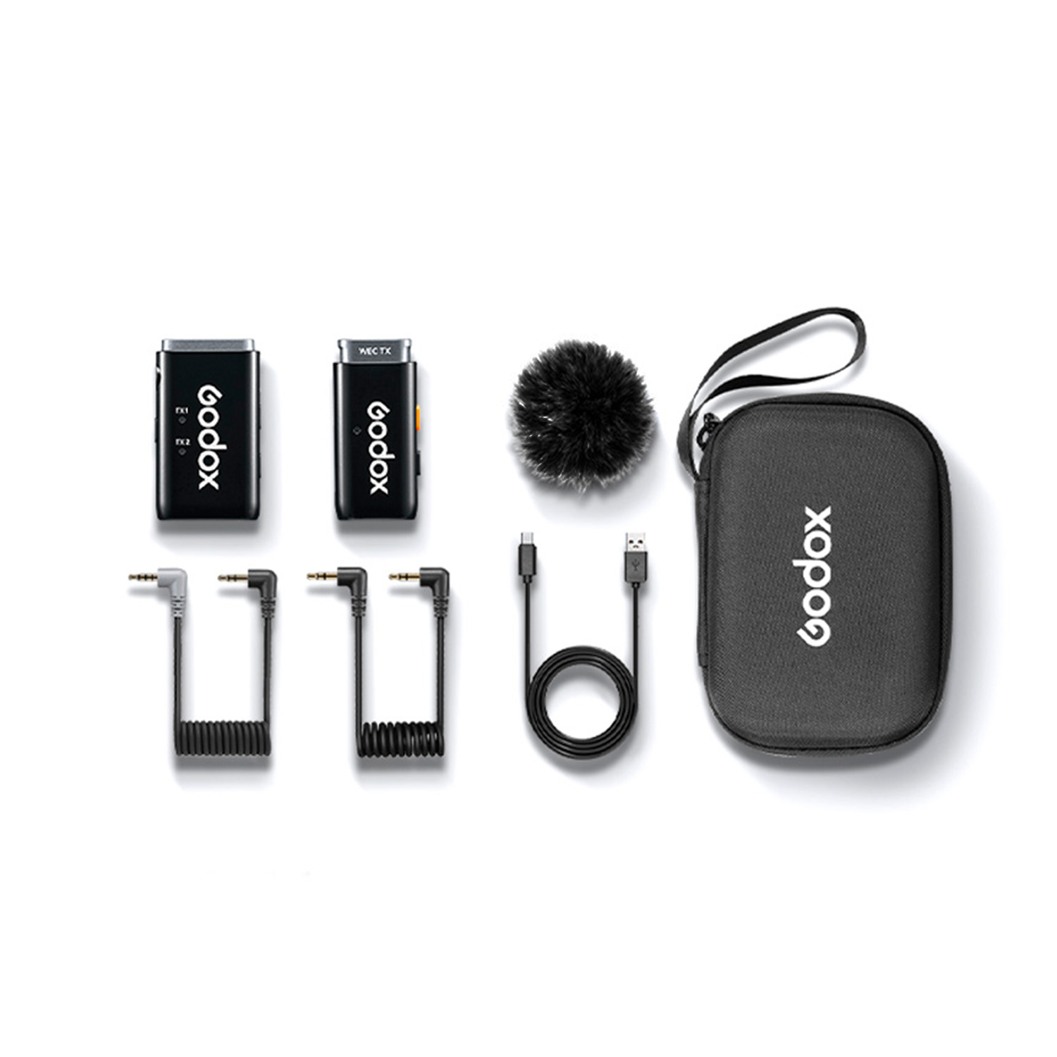 Godox WEC Kit1 – беспроводная радиосистема, состоящая из приемника и передатчика со встроенным микрофоном для записи аудио при съемке видеоконтента в помещении и на улице.