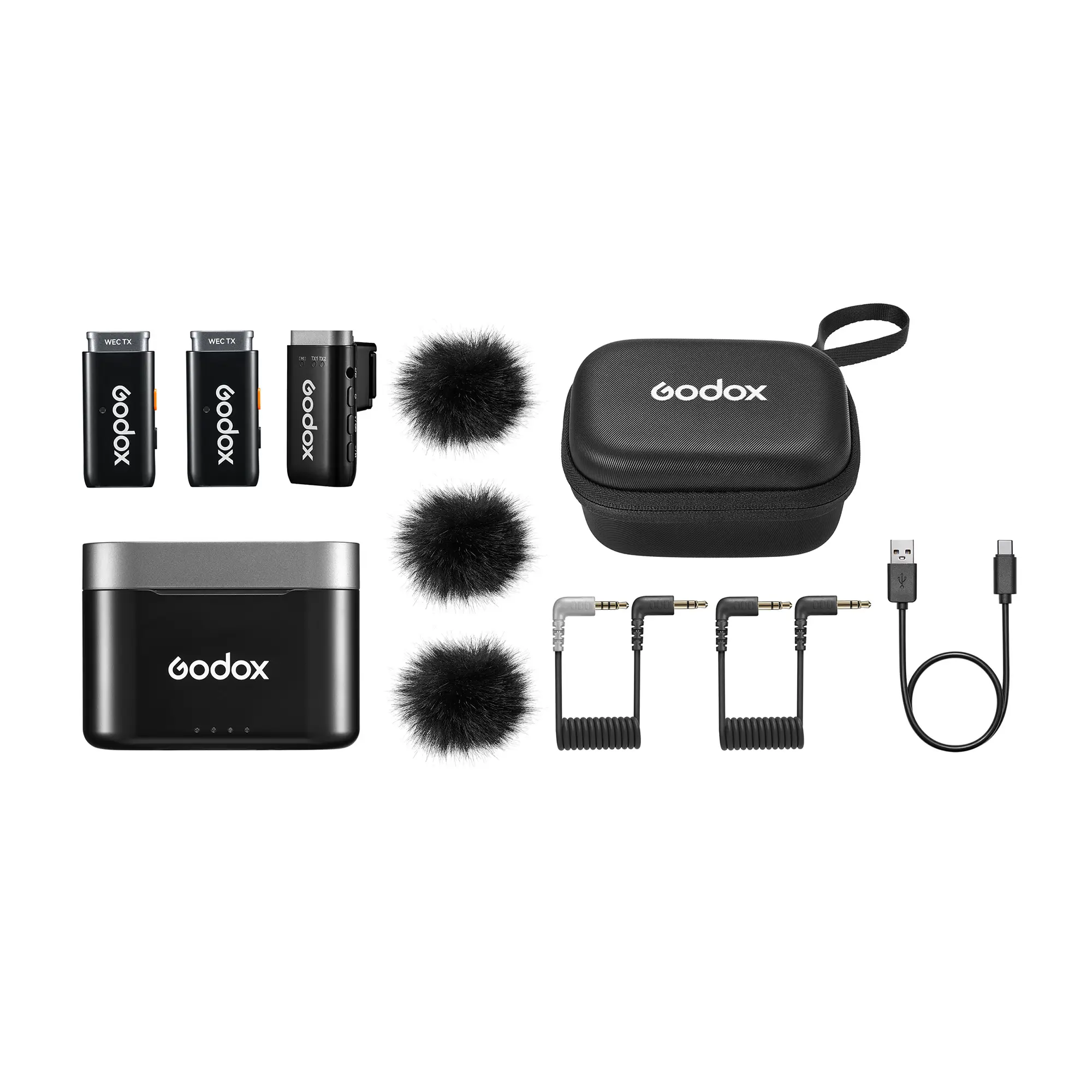 В комплект входит компактный приемник, два передатчика со встроенными микрофонами и зарядный кейс. Длительная работа от аккумулятора, большой радиус действия и функция шумоподавления делают Godox WEC-S Kit2 отличным вариантом для записи аудио не только в студии, но и на улице или в шумном помещении. Радиосистема подойдет для съемки интервью, блогов, лекций и проведения прямых эфиров в самых разных условиях.