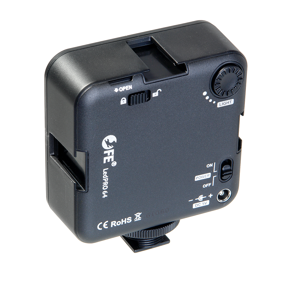 Falcon Eyes LedPRO 64 легкий и компактный светодиодный накамерный осветитель с возможностью объединения нескольких устройств в одну панель. 64 высокоэффективных светодиода генерируют мягкий световой поток без мерцаний с цветовой температурой 5500К ±200К. Технология производства светодиодов обеспечивает визуально точную цветовую температуру без искажений даже при уменьшении яркости. Осветитель предназначен для использования в фото- и видеосъемке, макросъемке, предметной съемке и других видах съемок. Falcon Eyes LedPRO 64 потребляет всего 4,5 Вт.