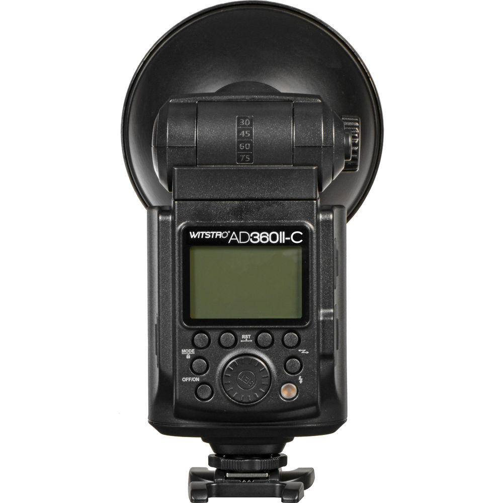 При использовании в качестве накамерной вспышки мощная переносная TTL вспышка AD360II-C совместима с DSLR фотокамерами Canon.