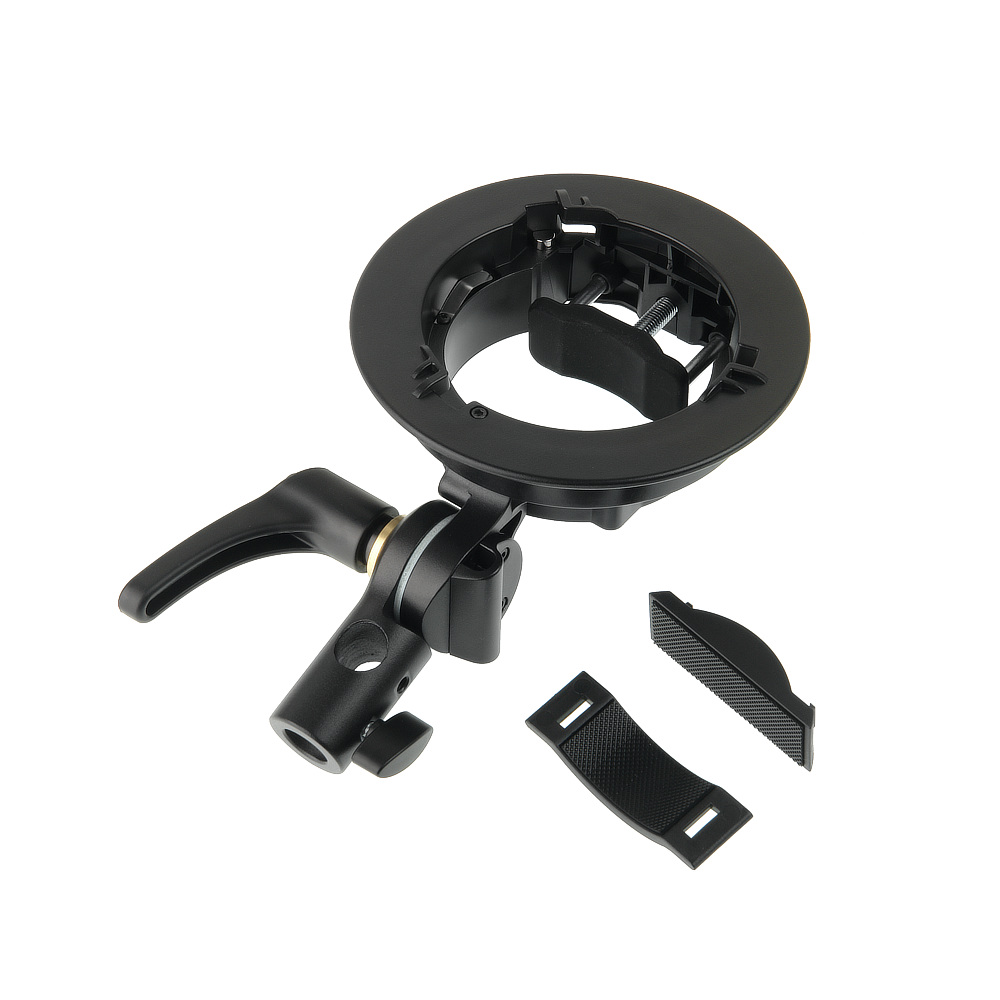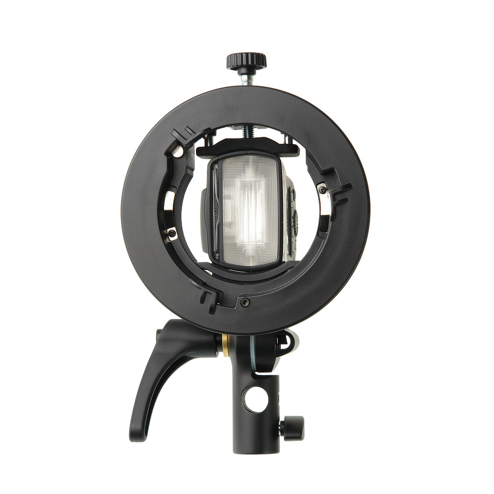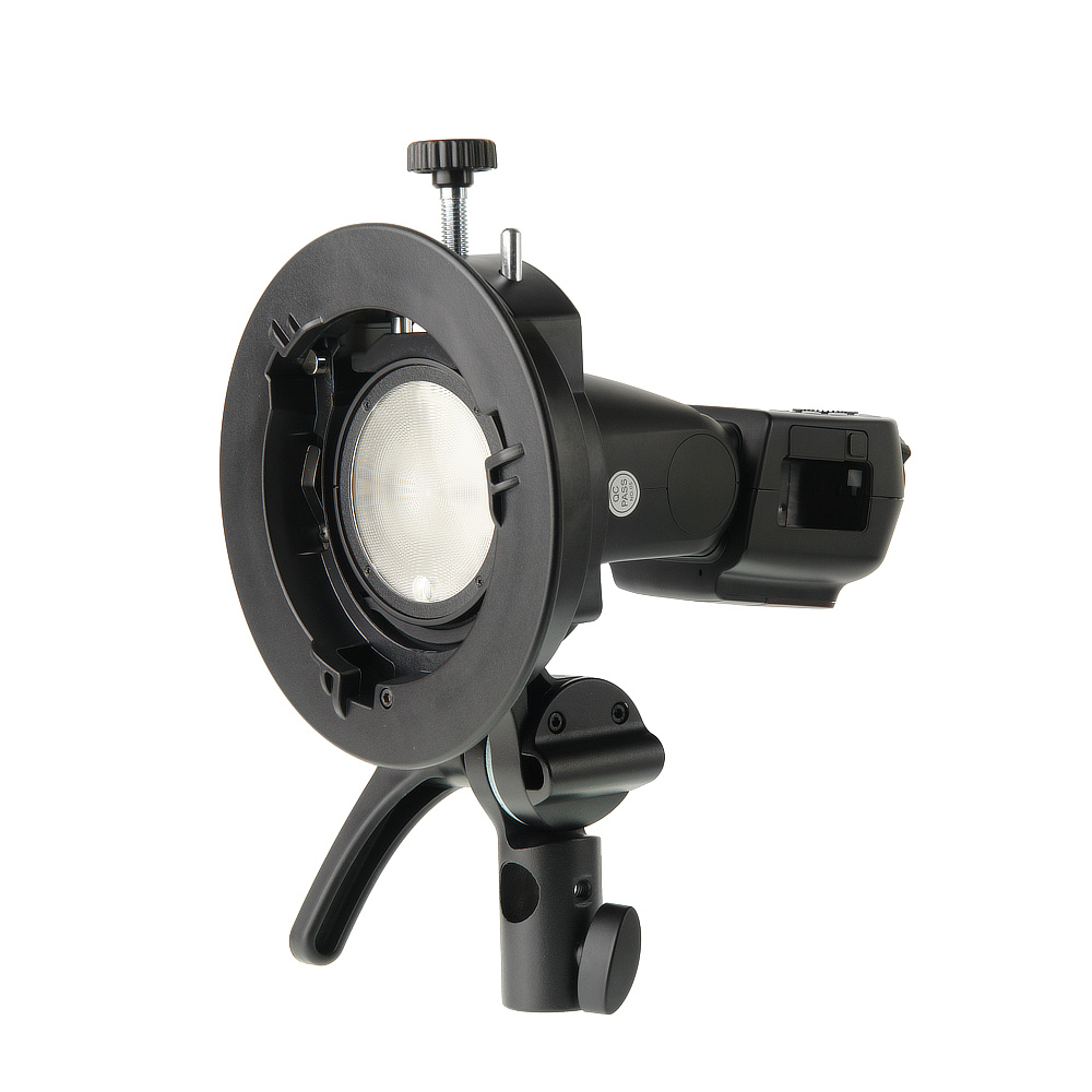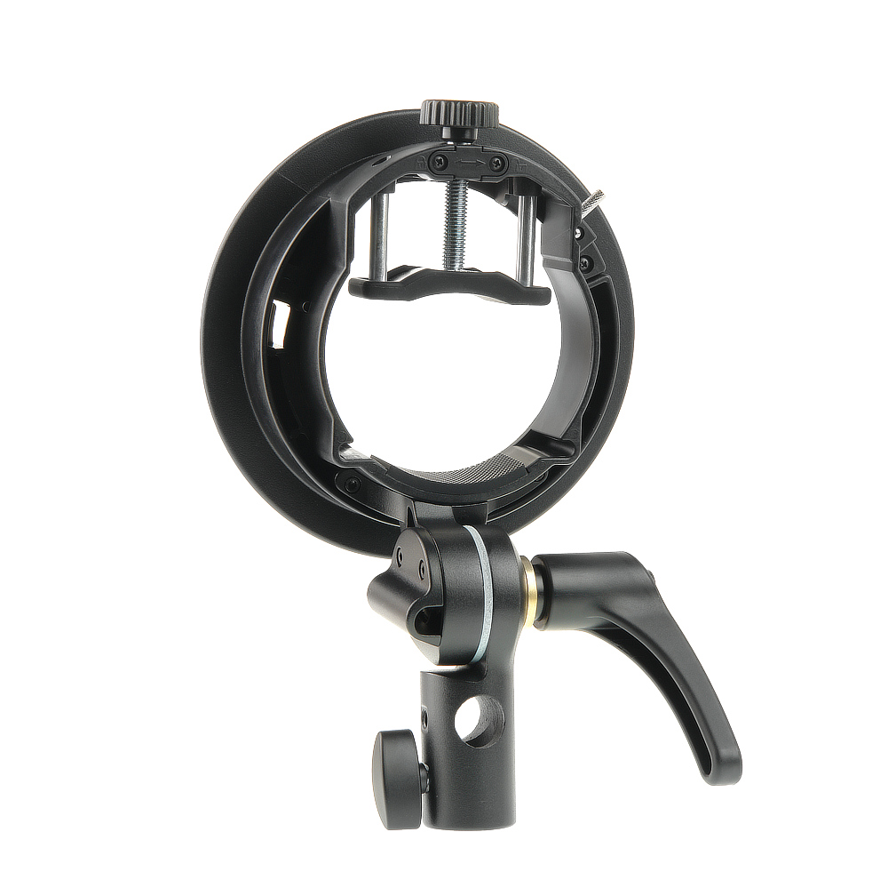 Godox S2 позволит раскрыть максимальный потенциал накамерной вспышки при работе с сотфбоксами, портретными тарелками, рефлекторами, конусами, фотозонтами и т. д. Кронштейн наклоняется почти на 180° и имеет крепление 5/8" для монтажа на стойке.