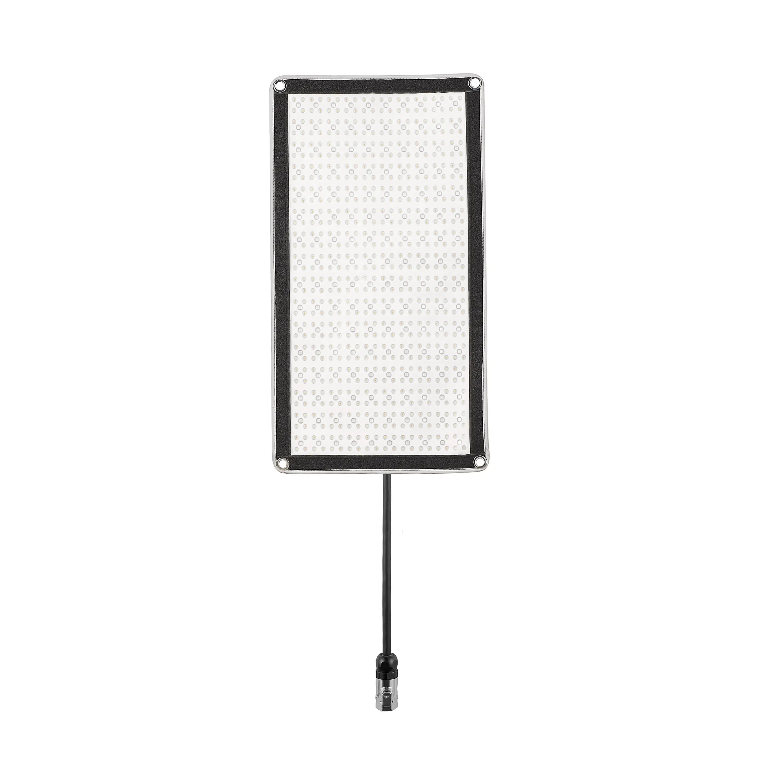 Осветитель питается от сети или от аккумулятора V-mount, позволяющего прибору работать автономно и сохранять непрерывность рабочего процесса. Площадка для установки аккумулятора, как и разъем для подключения кабеля, распложена на блоке управления панелью.