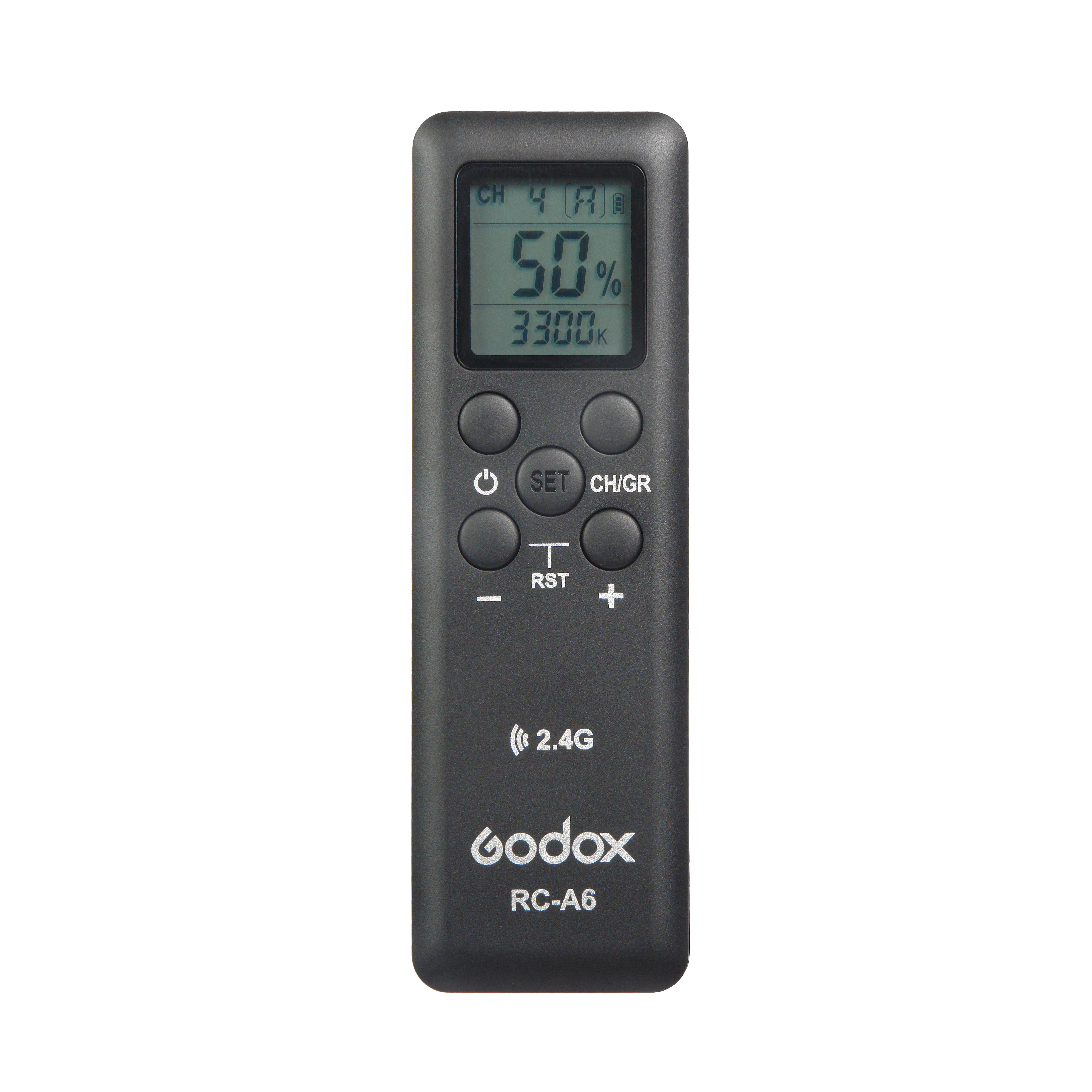 Осветитель может дополнительно комплектоваться с цифровым дисплеем, работающим на частоте 2.4 ГГц (16 групп и 32 канала). Пульт дистанционного управления помогает на расстоянии регулировать мощность яркости светового потока и задавать световые спецэффекты в режиме постоянного источника света. Питается от двух батареек ААА (в комплект не входят).