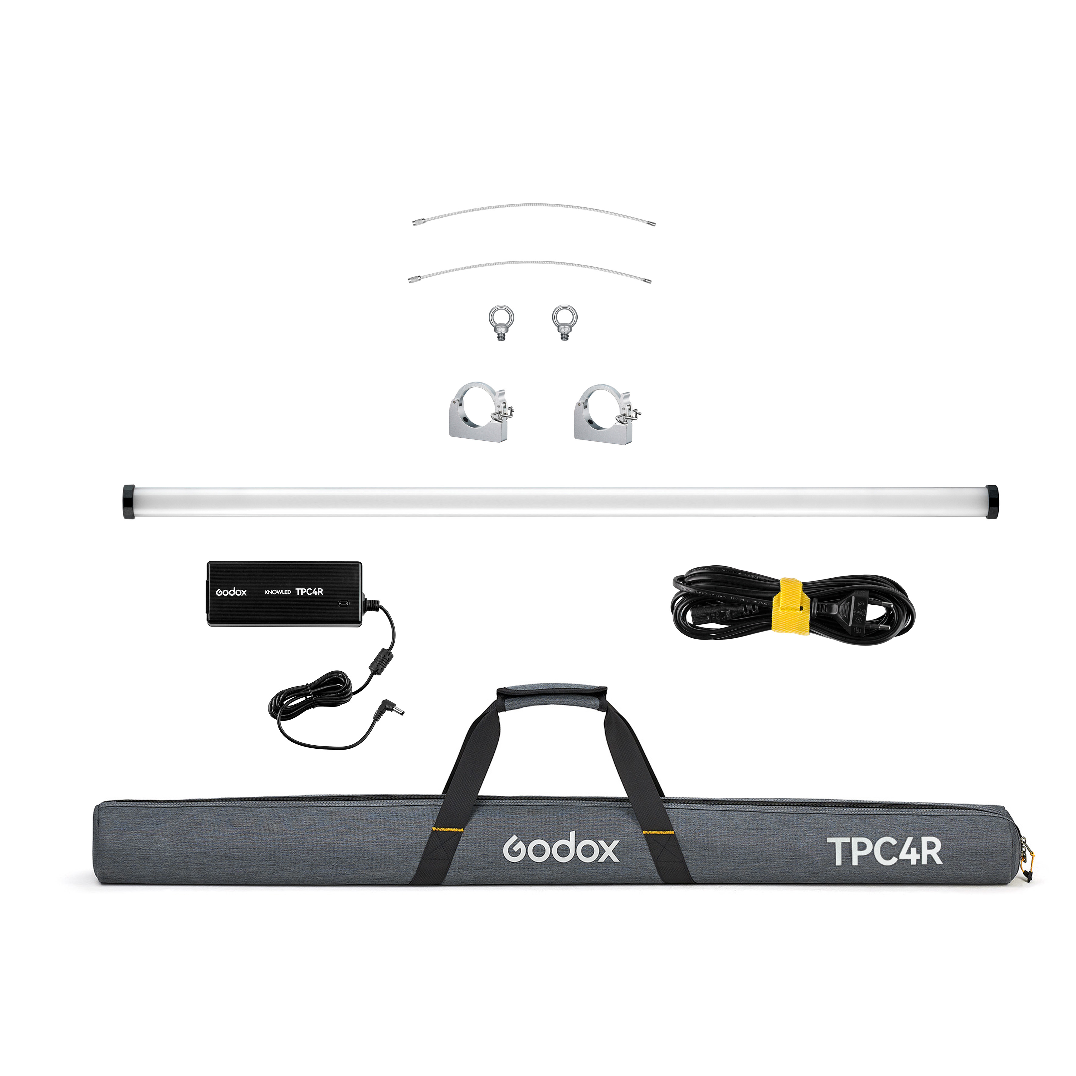 Godox Knowled TPC4R компактен, удобен в использовании, водонепроницаем (IP65), имеет встроенную литиевую батарею, отверстия для винтов 3/8 дюйма с обеих сторон, пять режимов работы (режим биколорного света CCT, режим цветного света HIS, режим имитации светофильтров GEL и режим спецэффектов FX), поддерживает управление по Bluetooth (приложение Godox Light 3.0) / DMX512 /беспроводное управление RDM.