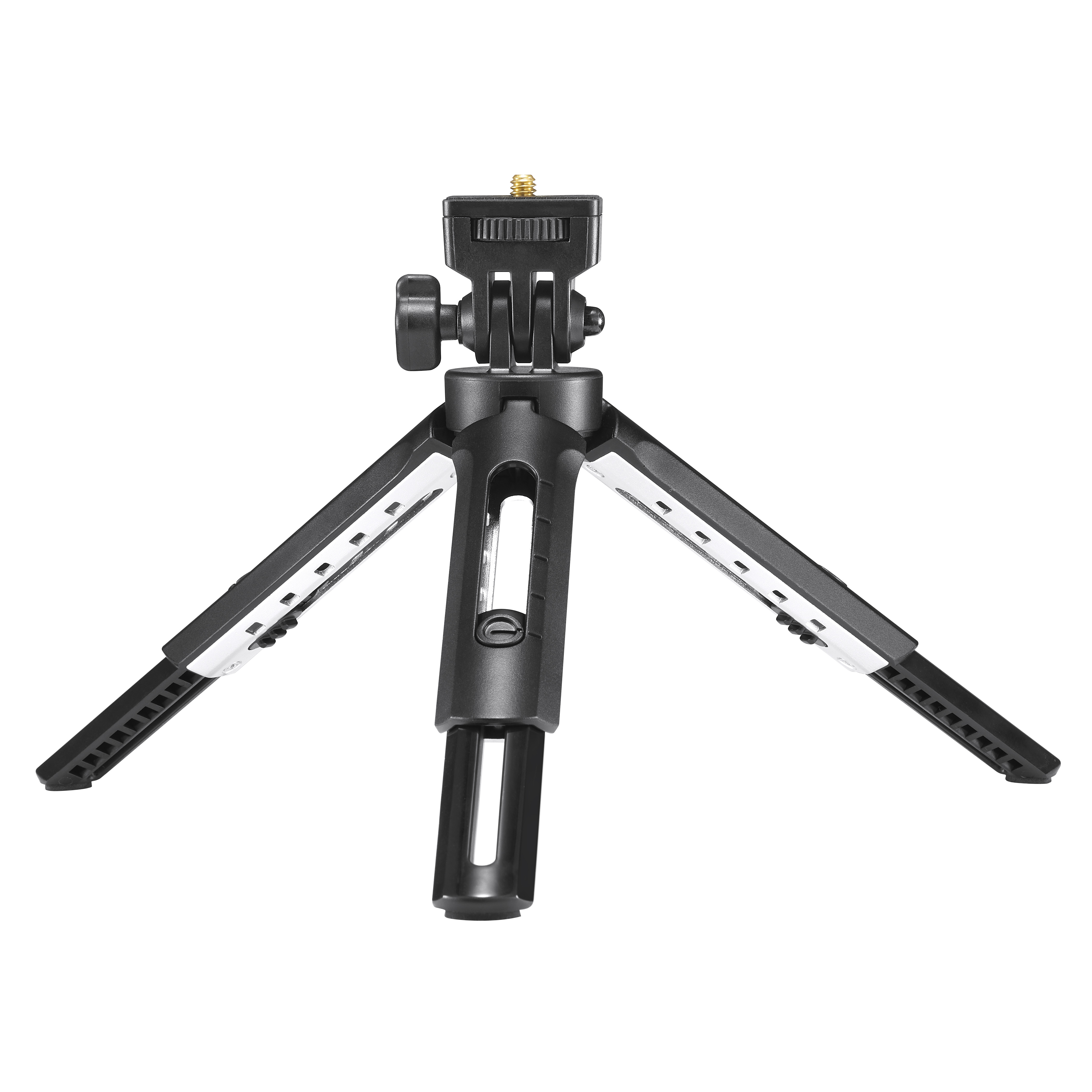 – легкий универсальный настольный мини-штатив с наклонно-поворотной головкой и посадочным винтом 1/4”.