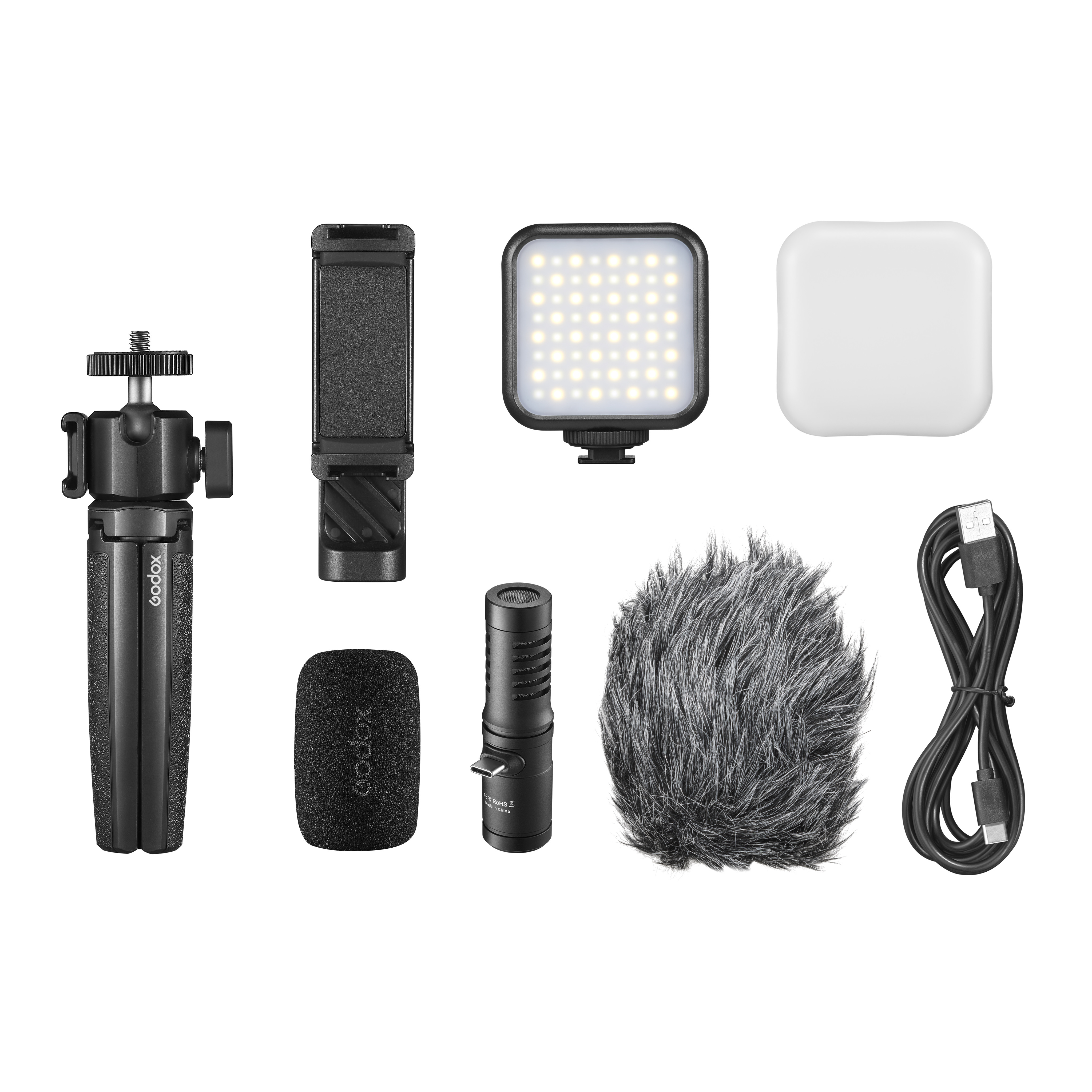 Комплект оборудования Godox VK2-UC создан для того, чтобы повысить качество видео, снимаемого на смартфон. В комплект входят светодиодный осветитель Godox LITEMONS LED6Bi, микрофон-пушка Godox Geniusmic со стандартным коннектором USB Type-C, складной штатив Godox MT03, держатель Godox MTH02. Комплект Godox VK2 станет отличным помощником в создании яркого освещения и записи профессионального звука для ведения видеоблогов, записи видео на YouTube, проведения лекций, мастер-классов и многого другого.