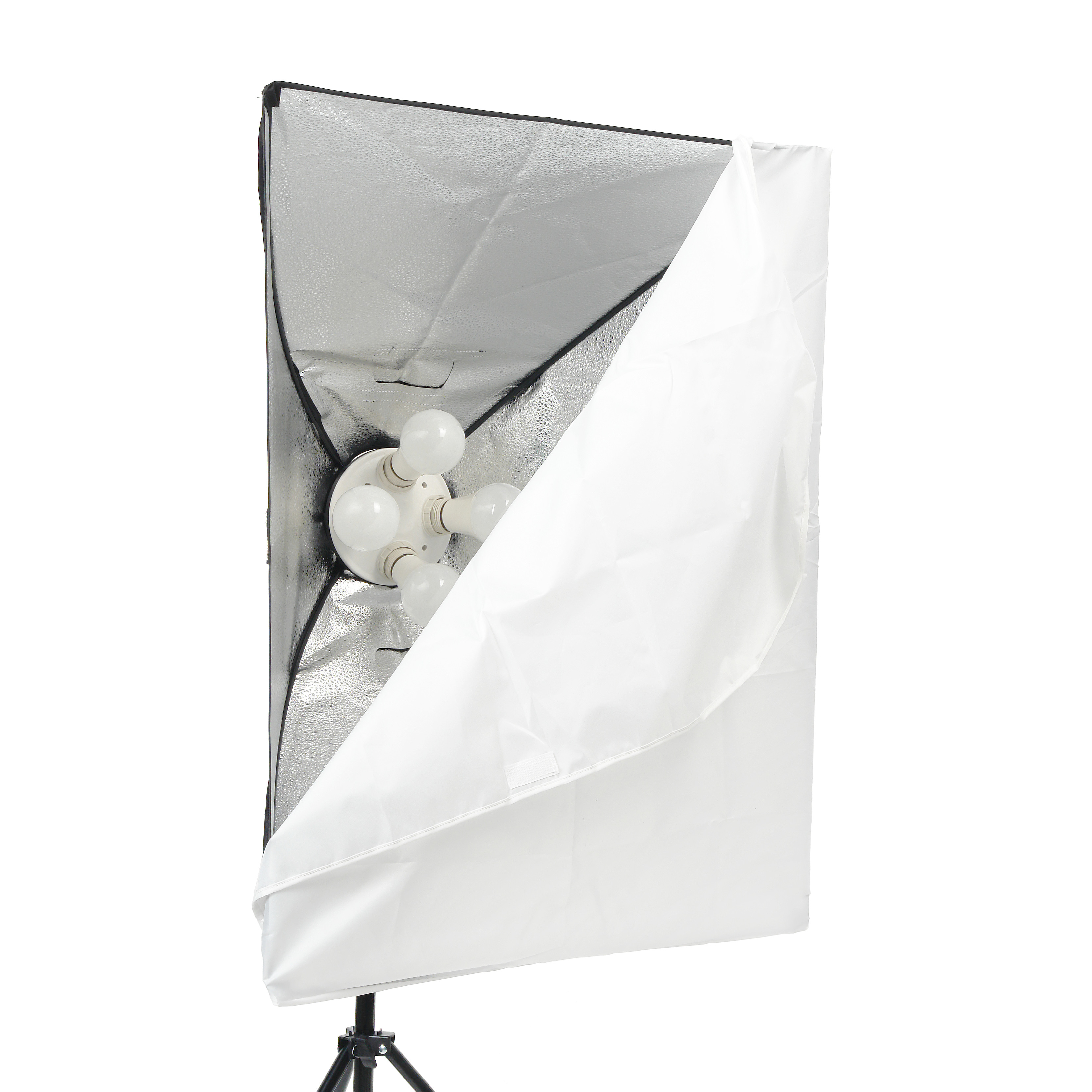 В комплект входит четырехламповый патрон-осветитель LH-E27х4 со светодиодными лампами ML-25 LED, съемный складной софтбокс 60х80 см и стойка для установки осветителей.