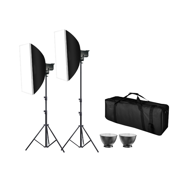 В комплект KeyLight III 2150D SB KIT входят два осветителя мощностью 150 Вт с цветовой температурой 5600К, рефлекторы, пульты ДУ, прямоугольные софтбоксы, стойки высотой до 280 см и сумка для хранения и транспортировки комплекта.