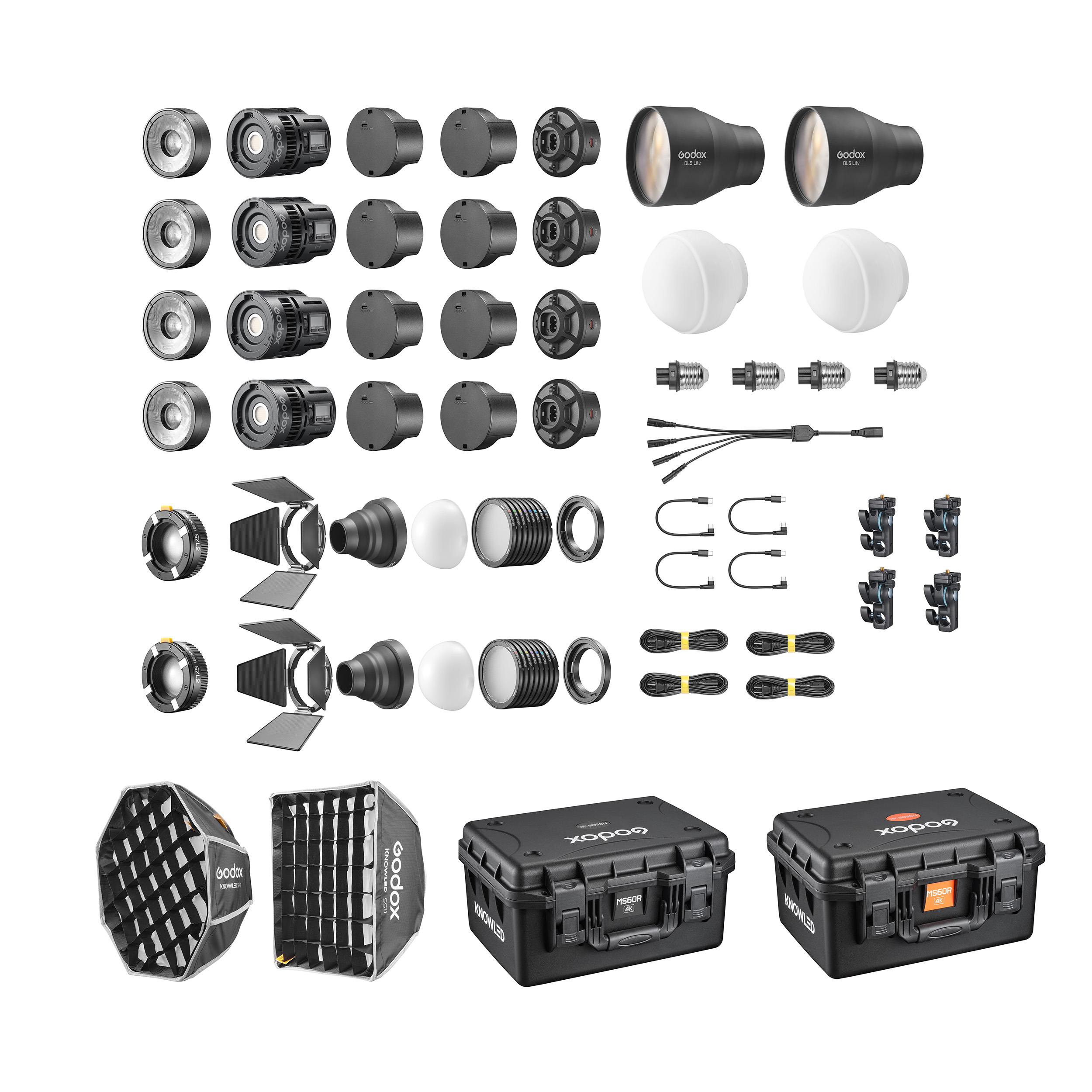 Комплект включает множество светоформирующих насадок с байонетом Godox Mini для создания уникальных световых схем.