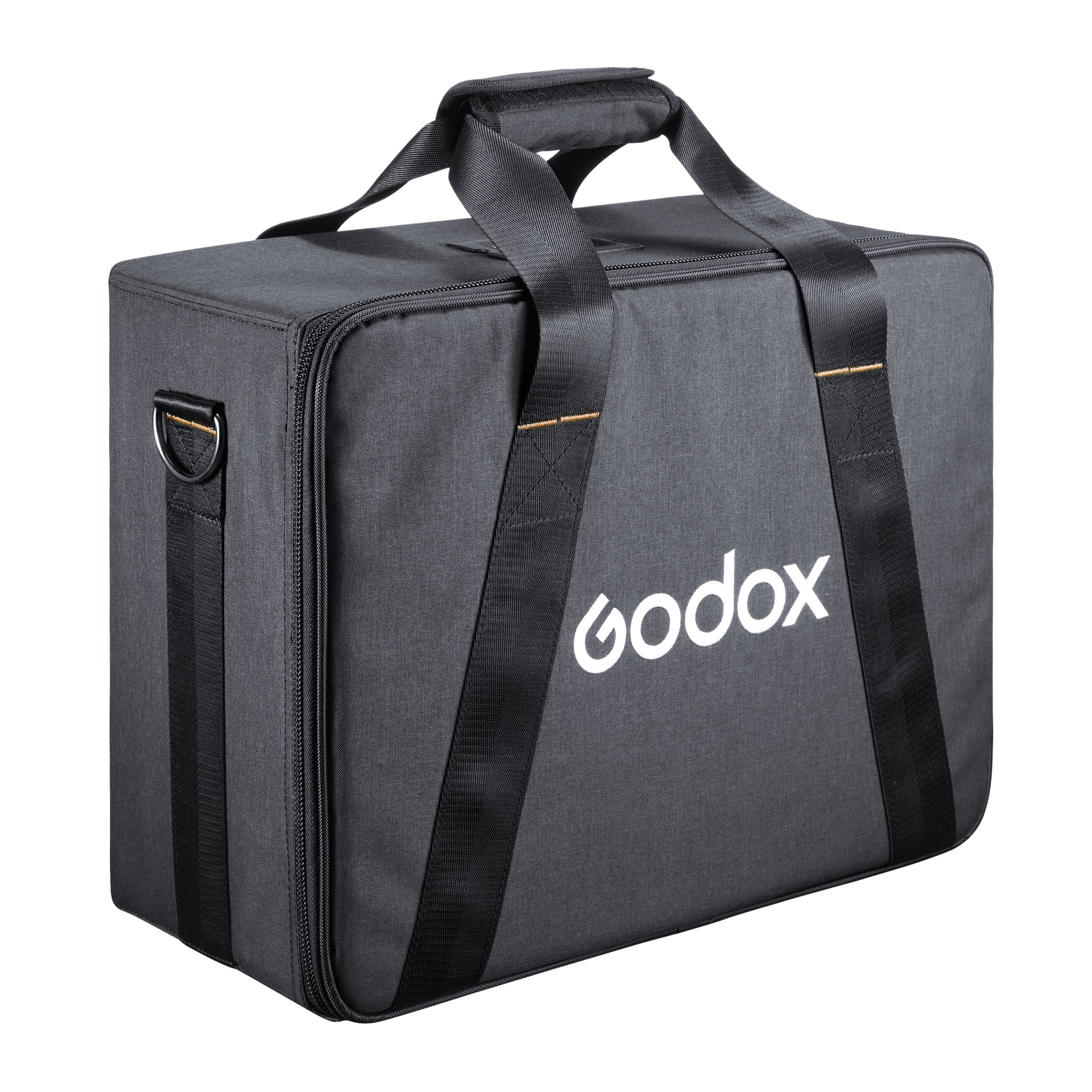Сумка-кейс Godox CB32 на молнии с двумя ручками и наплечным ремнем вмещает все предметы комплекта. Внутренние размеры CB-33 составляют 30x40x18 см, пространство разделено переставными перегородками. Внешние размеры компактны – 32x44x22 см.