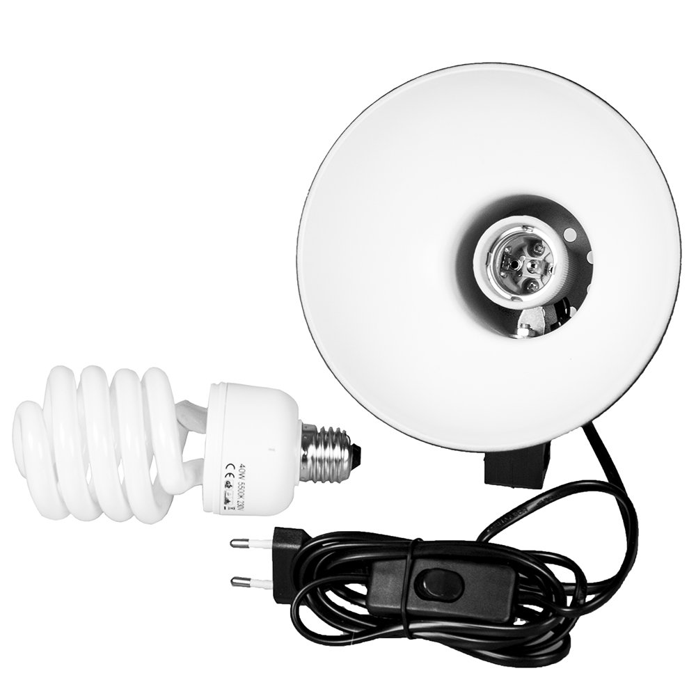 LHPAT-15-1 – люминесцентный (флуоресцентный) осветитель со стандартным патроном Е27 и рефлектором (диаметр 15 см). Преимуществом этого осветителя является низкое энергопотребление и малое тепловыделение, цветовая температура лампы из комплекта соответствует дневному свету 5500К (возможна установка люминесцентных ламп с другой цветовой температурой).