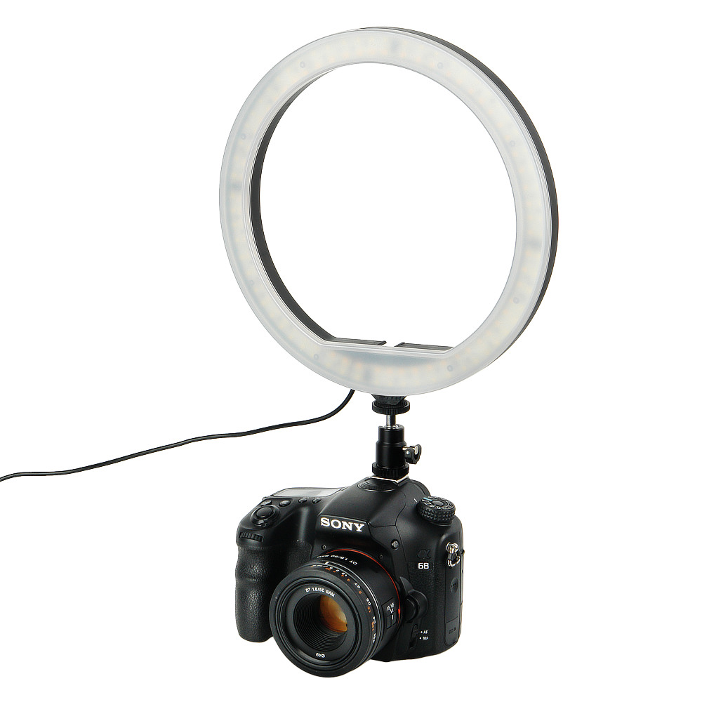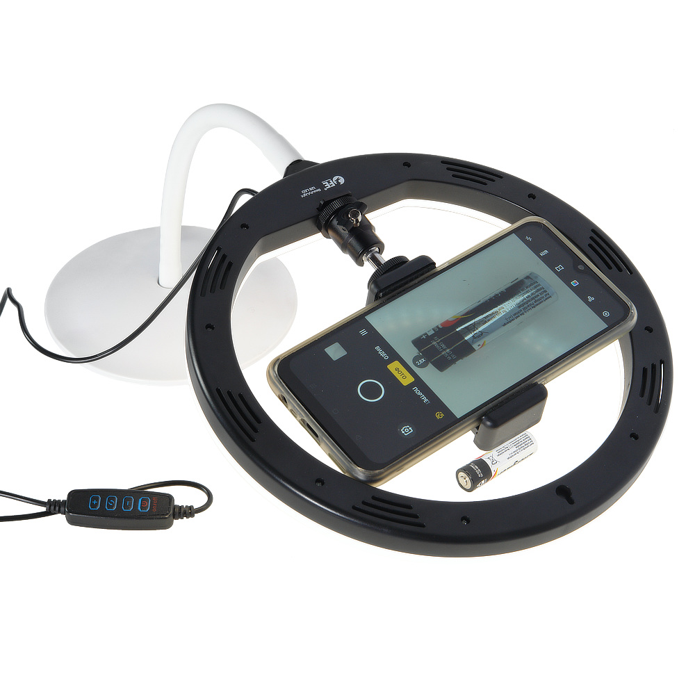 При помощи комплектных аксессуаров: шаровой мини-головке и держателя смартфона, можно вести съемку с помощью смартфона (шириной от 5 до 8 см) или небольшой DLSR или беззеркальной фотокамеры (диаметр внутреннего кольца 18 см). При этом происходит равномерно распределение света вдоль оптической оси объектива. Компактные размеры и вес осветителя 0.8 кг позволяют также использовать его как накамерный свет, прикрепляя к фотокамере через крепление «башмак» в основании комплектной шаровой мини-головки