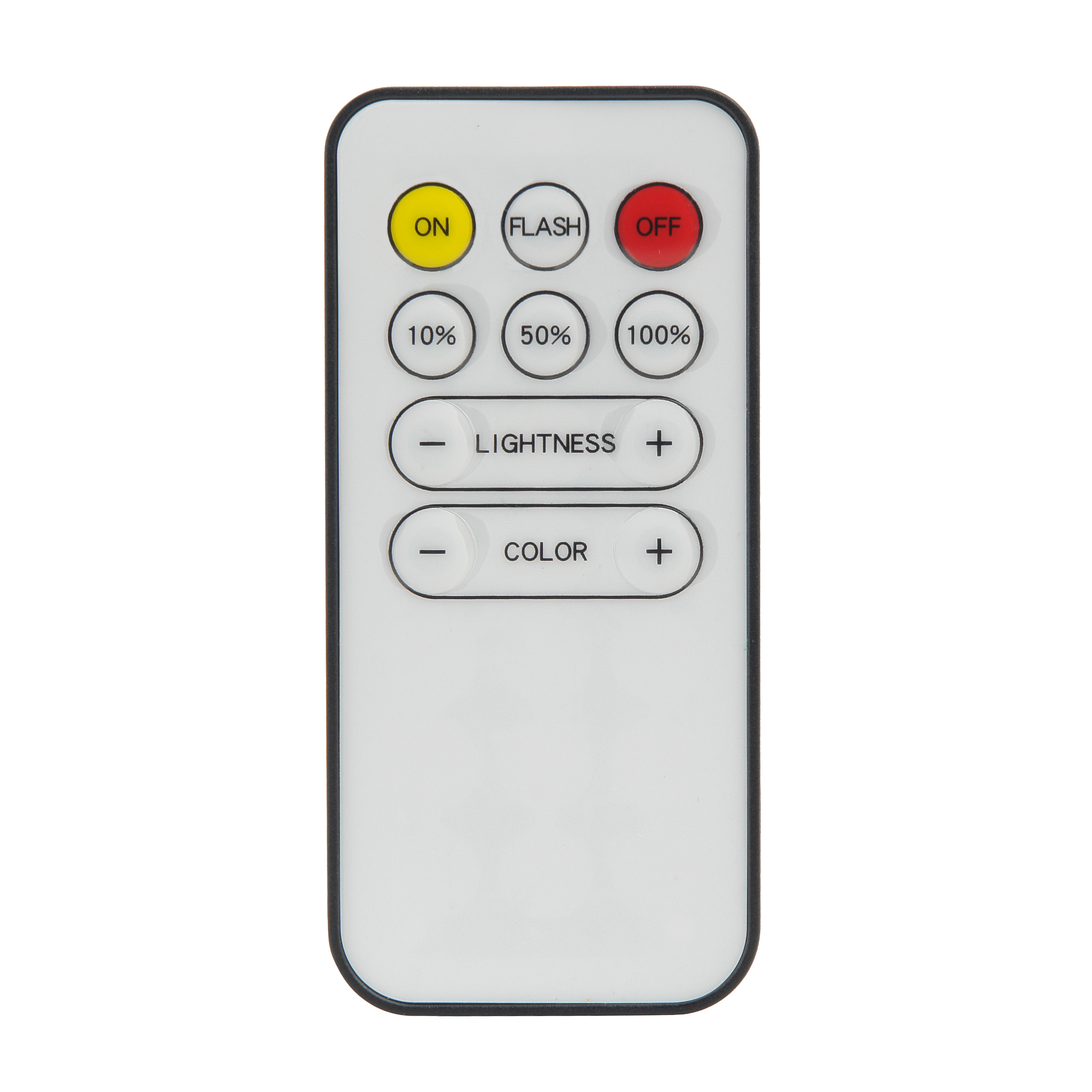 Дистанционное управление при помощи комплектного инфракрасного пульта позволяет удаленно включать и выключать осветитель, регулировать яркость и цветовую температуру, задавать предустановленные световые динамические режимы и скорость их воспроизведения. Кроме того, на пульте управления имеются 3 горячие клавиши, устанавливающие 10%, 50% и 100% яркости освещения в выбранном режиме (Bi-color или режиме спецэффектов).