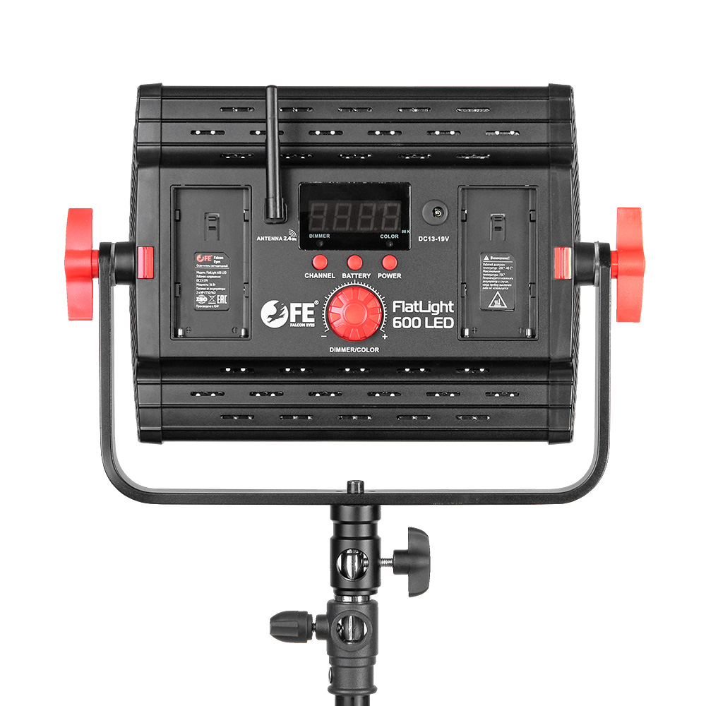 Осветитель светодиодный Falcon Eyes FlatLight 600 LED представляет собой светодиодную панель из 600 светодиодов размером 19,5 x 17 см с цветовой температурой 5600К, беспроводным пультом дистанционного управления, 4-лепестковыми шторками и возможностью питания от аккумуляторных батарей серии NP-F. Осветитель подходит для кино- и видеопроизводства, фотографии.