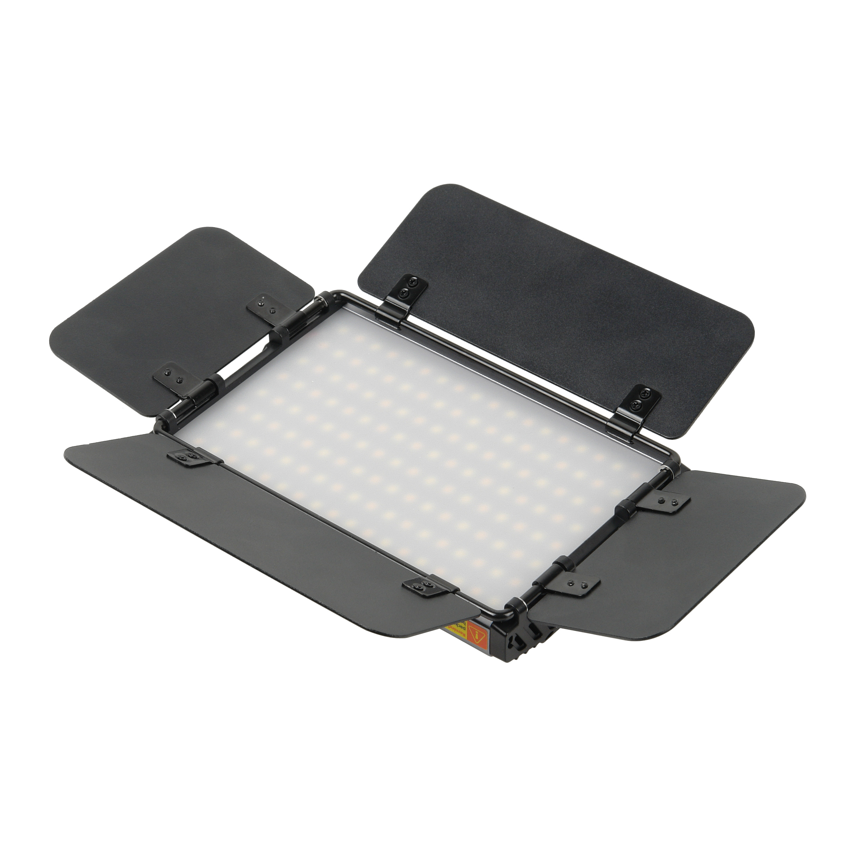 Корпус осветителя изготавлен из легкого и прочного авиационного алюминия и оснащен съемными четырехлепестковыми металлическими шторками. Шторки служат для сужения и перенаправления светового потока, ограничения излишней световой засветки и создания световых эффектов, а также предохраняют световую панель от повреждений во время транспортировки.