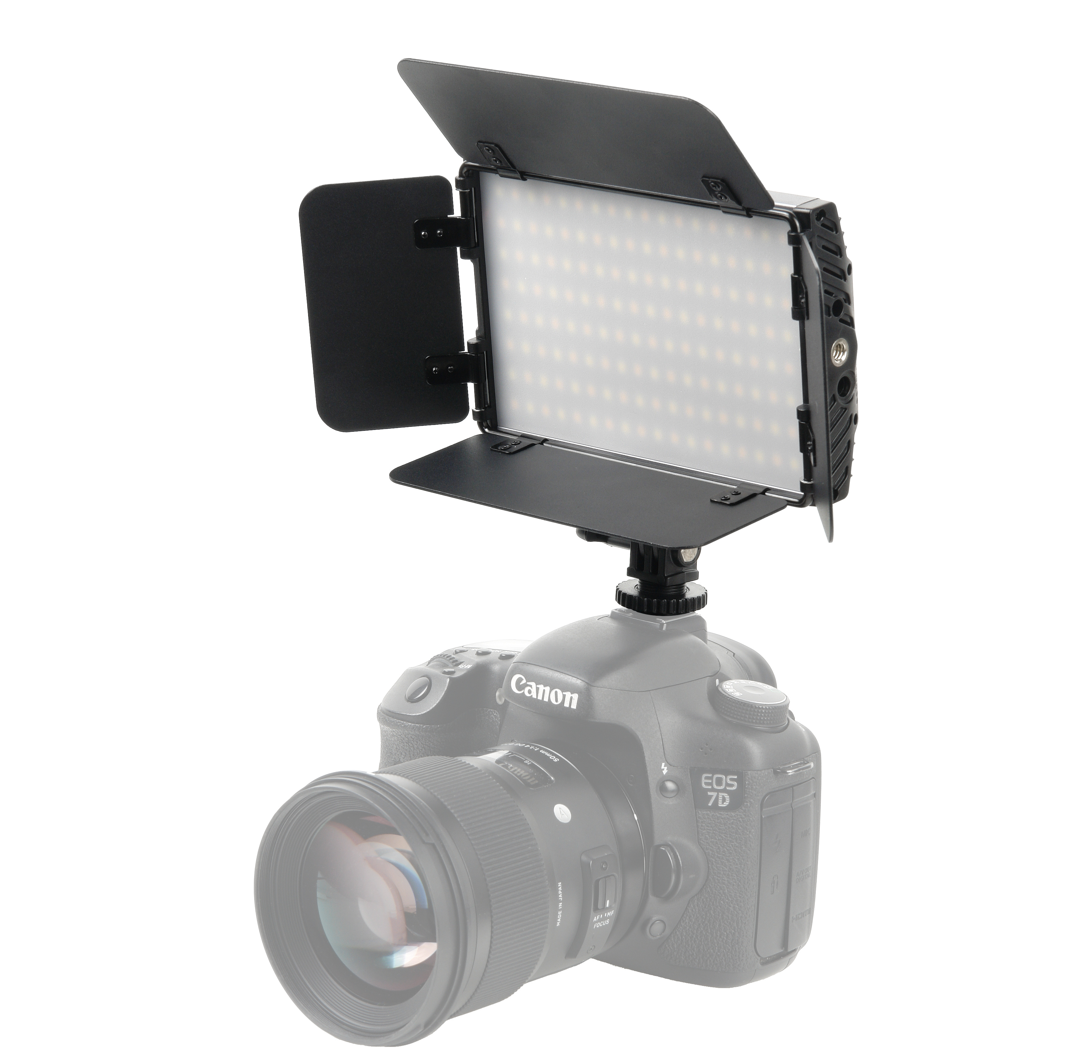 На трех сторонах корпуса панели расположены резьбовые отверстия для винта 1/4 дюйма для вертикальной или горизонтальной установки осветителя. Наклонный кронштейн с адаптером «башмак» имеет для винт с резьбой 1/4 дюйма для крепления к корпусу осветителя и резьбовое отверстие 1/4 дюйма в основании. Такая конструкция устанавливается на камеру, риг, осветительную стойку и любой держатель с винтом 1/4 дюйма или креплением «башмак».