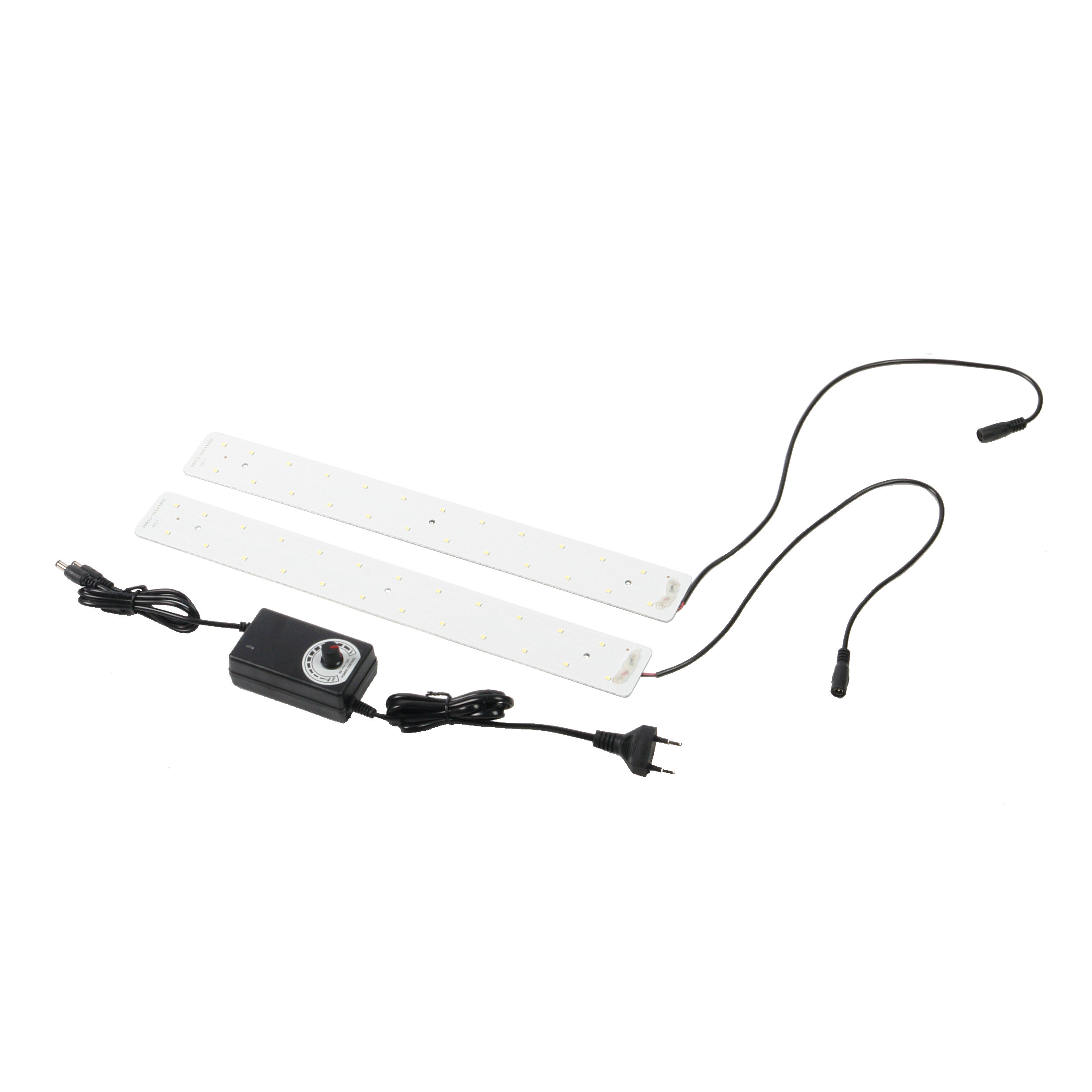 Комплектный сетевой адаптер с регулятором обеспечивает питанием и управляет освещенностью двух планок одновременно.