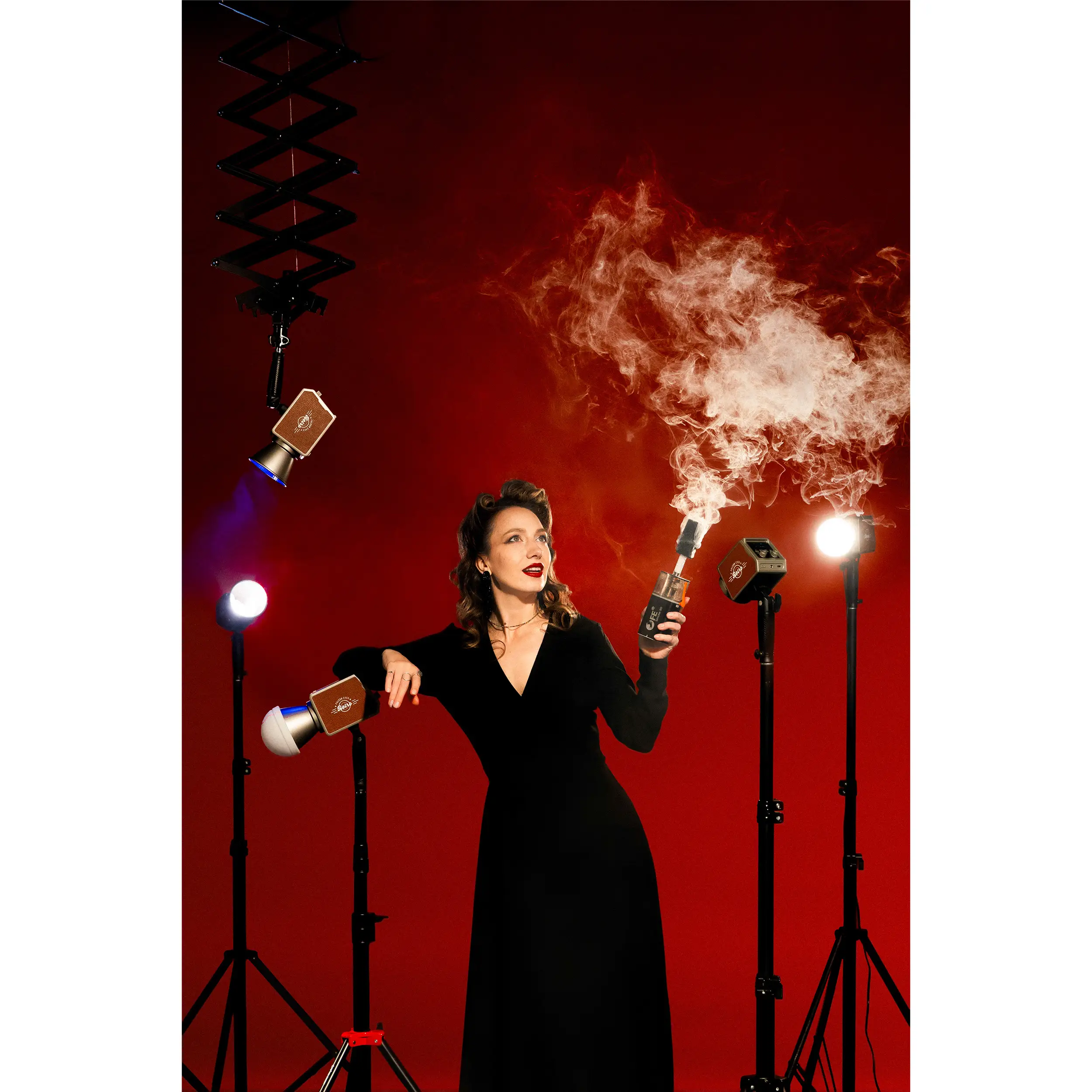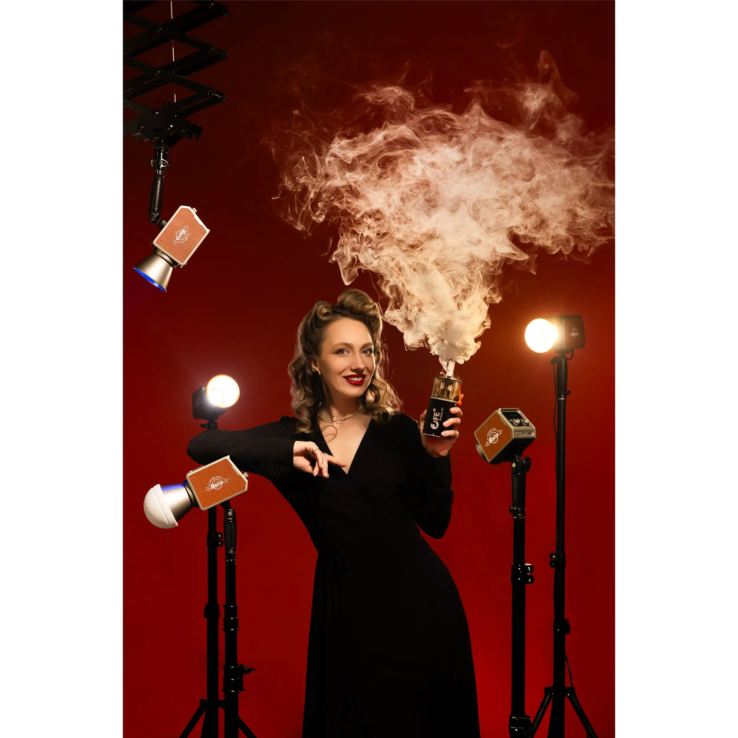 Совместное использование ретро-осветителя с генератором дыма, например, , расширяет творческие возможности пользователя в создании глубоких и выразительных кадров.