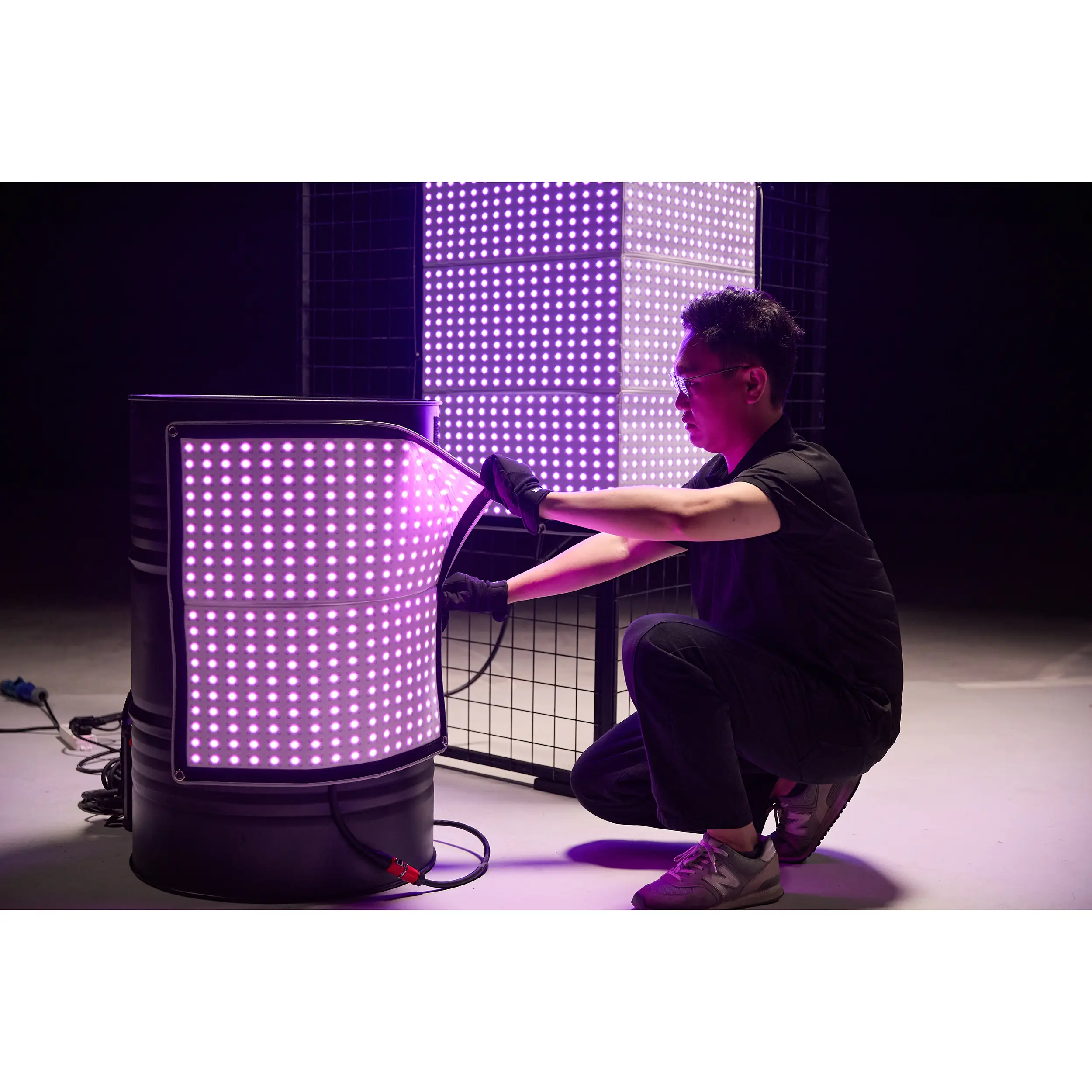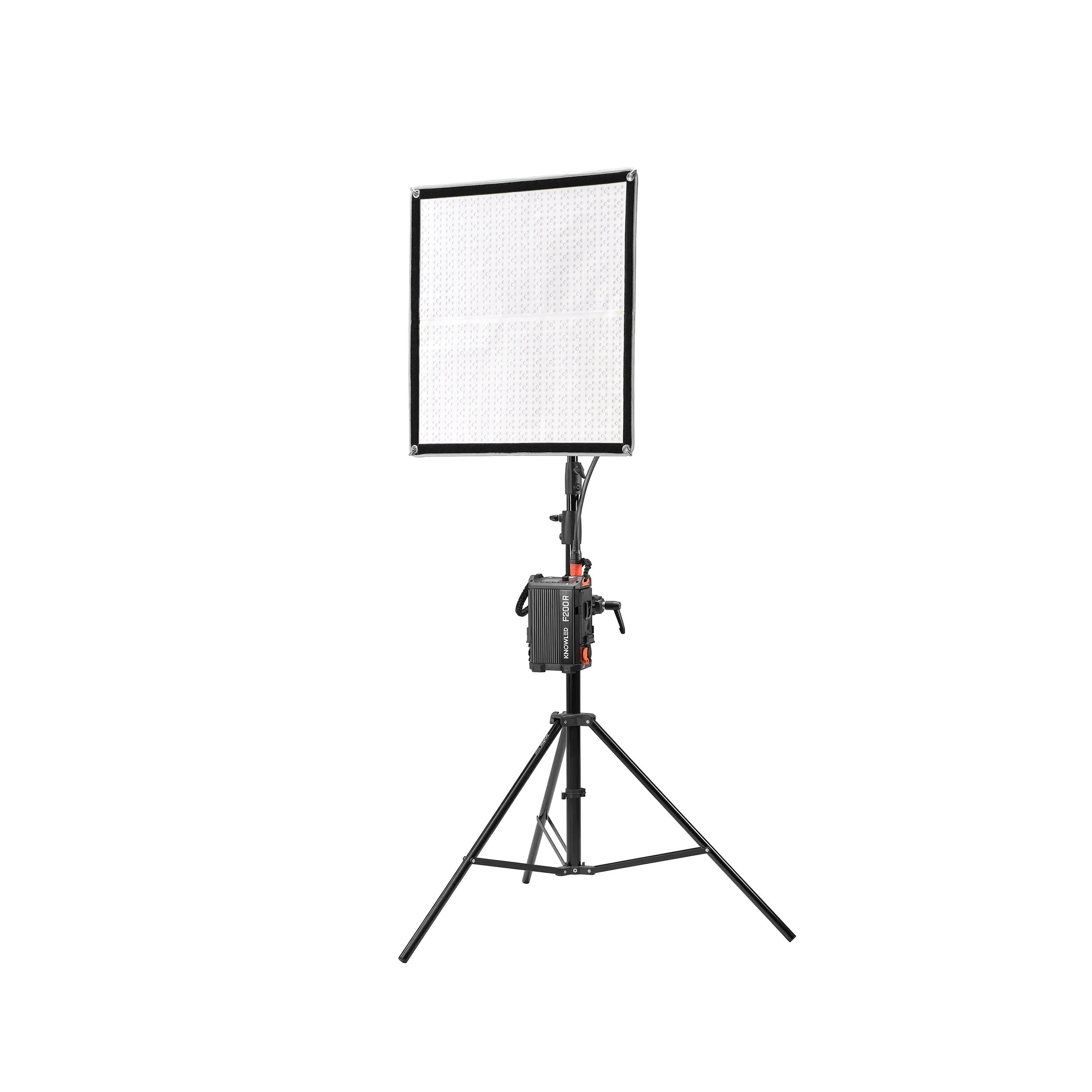 Осветитель представляет собой тонкую гибкую панель размером 60х60 см, которая крепится на металлический X-кронштейн или натягивается с помощью люверсов и липучек, благодаря чему осветитель можно размещать в ограниченном пространстве, на углах, выступах и иных неровных поверхностях.