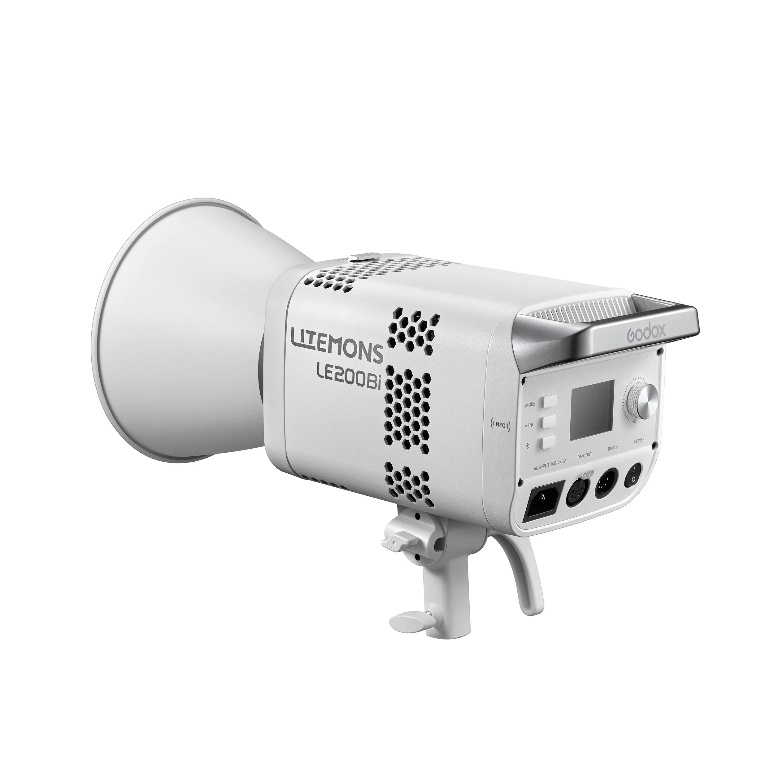 Godox LITEMONS LE200Bi — это биколорный светодиодный осветитель мощностью 220 Вт с питанием от сети 100-240 В. Прибор характеризуется высоким световым потоком, регулируемой цветовой температурой от 2800K до 6500K и исключительными индексами цветопередачи (CRI/TLCI ≥98). Оснащен встроенным блоком питания, интеллектуальной системой охлаждения и байонетом Bowens для установки светоформирующих насадок. Управление возможно как с панели на корпусе, так и дистанционно через Bluetooth, DMX512 или CRMX (опция).