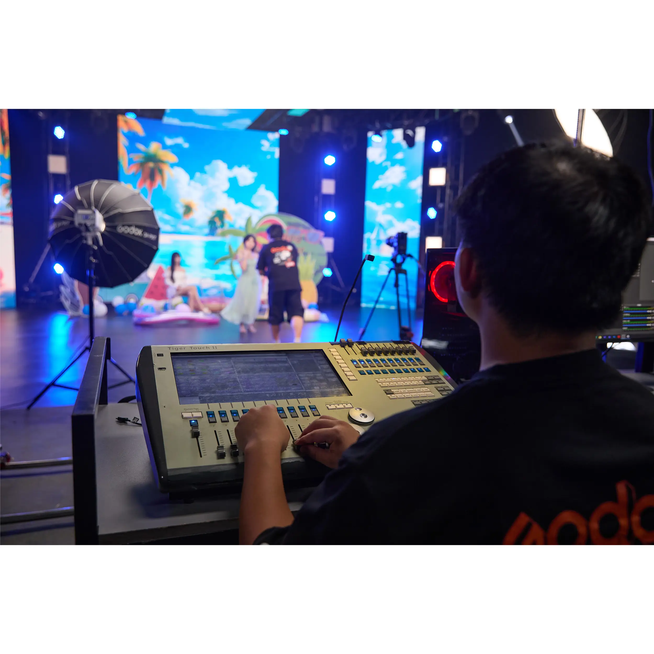 Осветитель предоставляет несколько вариантов управления для гибкой работы на площадке: прямое управление с панели на корпусе, беспроводной контроль через Bluetooth, а также интеграция в профессиональные DMX-системы.