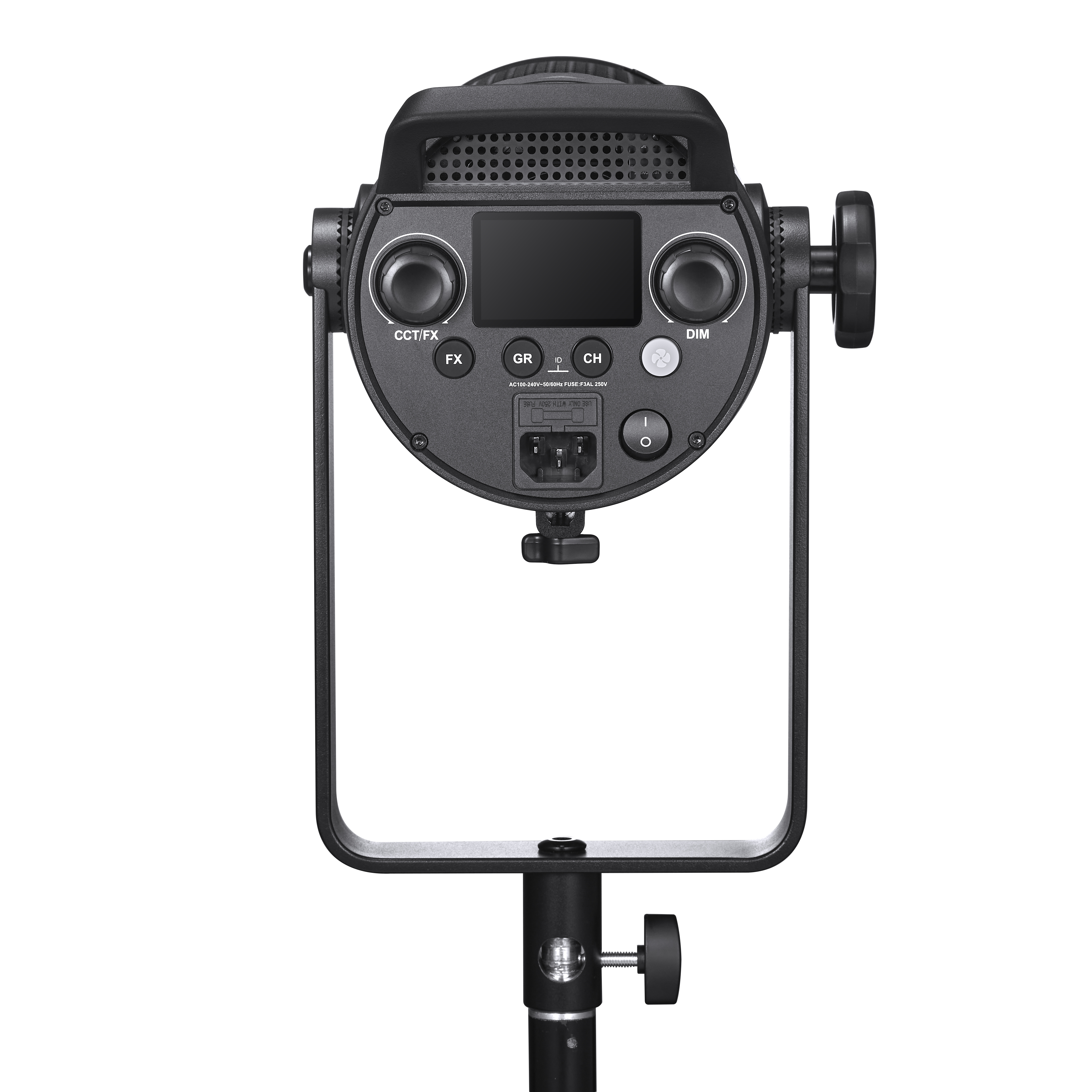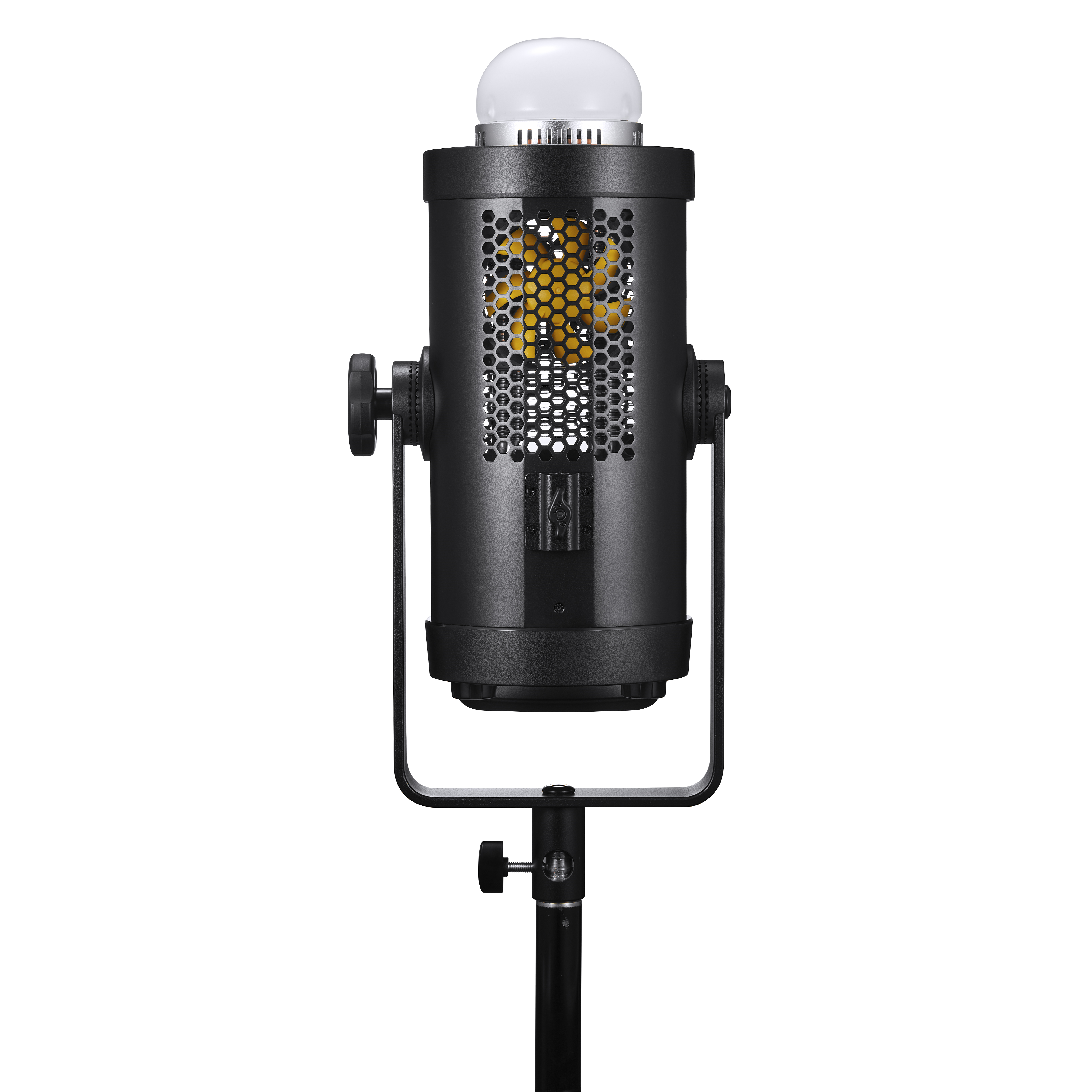 Кронштейн-лира обеспечивает вращение осветителя на 360° и может использоваться со студийными стойками со стандартным шпиготом 5/8 дюйма или перекладинами.