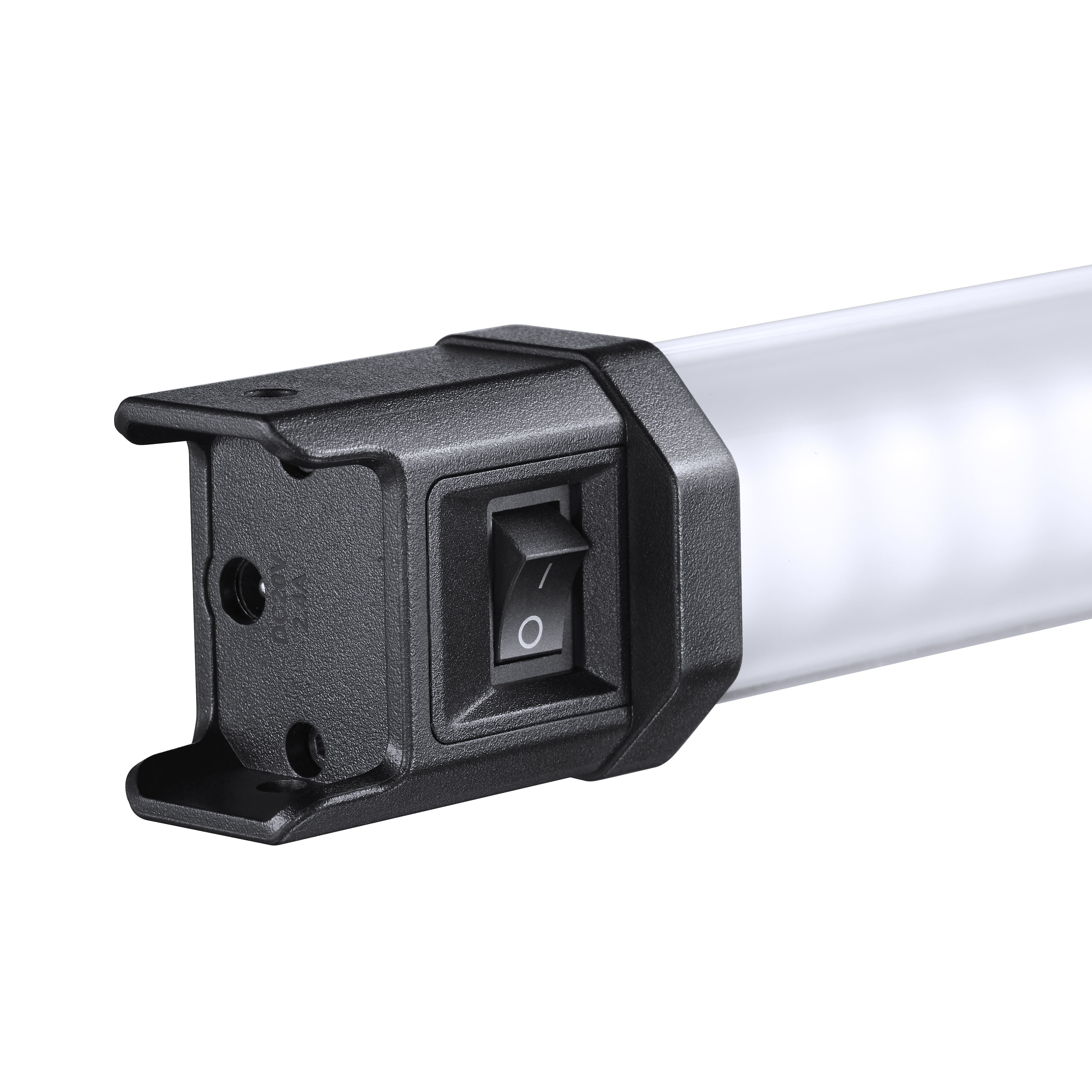 Встроенный литий-ионный аккумулятор обеспечит два часа беспрерывной работы на полной мощности при полном заряде батареи или проработает больше времени, в режиме спецэффектов или если яркость светового потока не будет максимальной. Во время более длительной съемки осветитель может питаться от стандартной электрической розетки при помощи штатного сетевого адаптера. Длина осветителя 75 см и вес 0.73 кг позволят удерживать прибор в руке или закрепить практически в любом месте даже на кинотейп. В комплект также входят пластиковый клипса-зажим для установки осветителя на стойку или риг с резьбой ¼'' и два металлических тросика для подвешивания.
