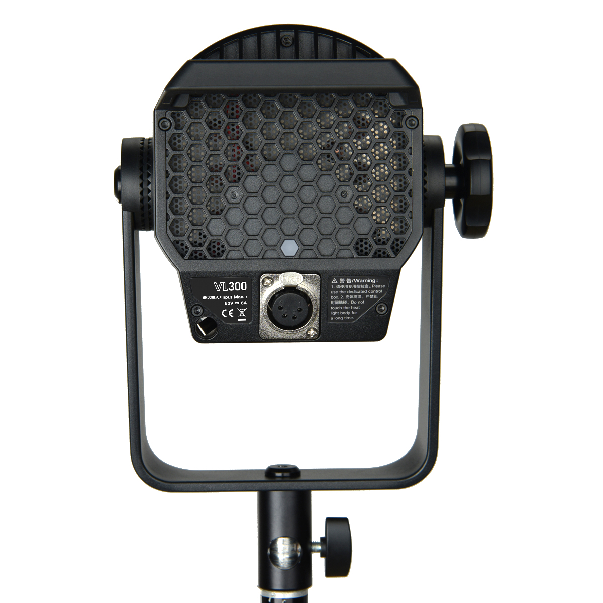 Осветитель VL300 управляется и питается от внешнего блока управления (контроллера), что делает его автономным и простым в управлении. Питание осуществляется от сети (сетевой адаптер входит в комплект) или от аккумуляторных батарей типа V-mount (приобретается отдельно).
