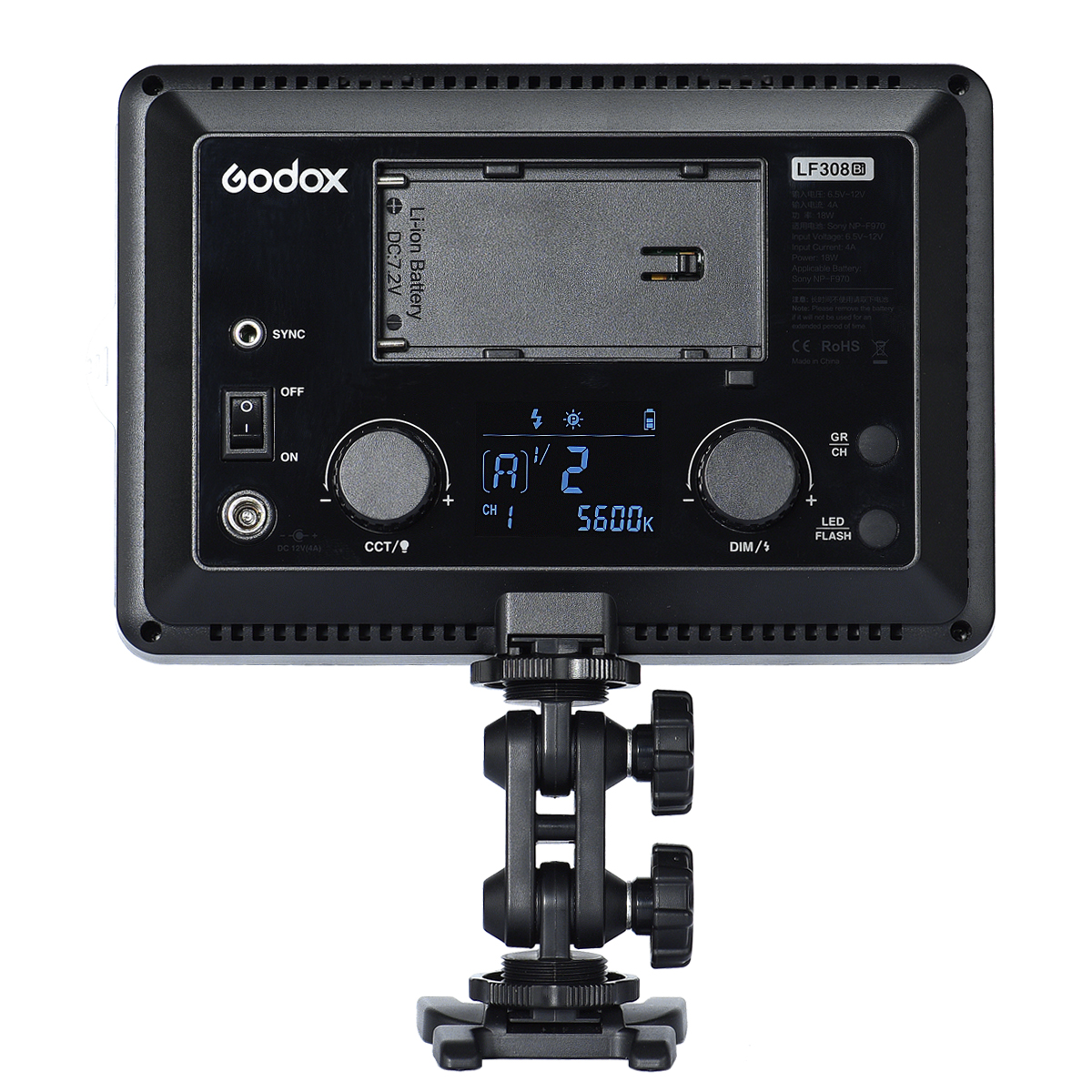Godox LF308BI — накамерный источник постоянного света с функцией вспышки, оснащен 308 светодиодными лампами (154 теплого + 154 холодного белого света) с плавно регулируемой яркостью светового потока от 0 до 100% и цветовой температурой 3300–5600 К. Осветитель со сбалансированным световым поток с высоким индексом цветопередачи CRI >95 может использоваться во время фото- и видеосъемки как в студии, так и за ее пределами.