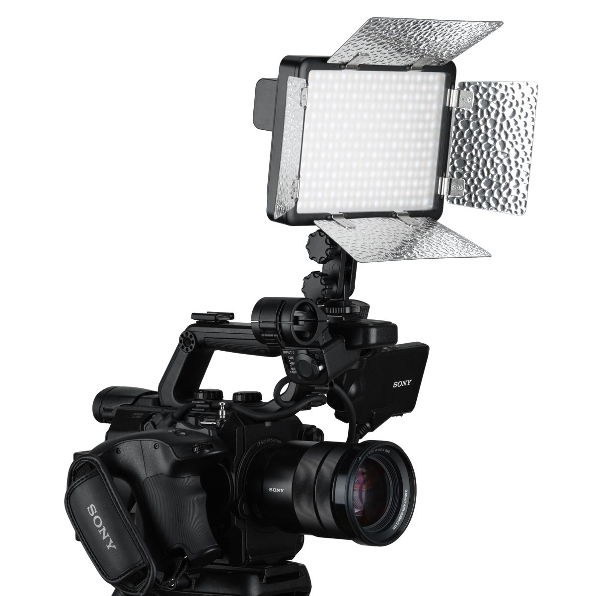 Над дисплеем находится аккумуляторная площадка для крепления аккумулятора NP-F (батарея не входит в комплект). Штатное питание осуществляется от комплектного сетевого адаптера, а приобретая дополнительно аккумулятор NP-F вы сможете использовать осветитель там, где нет обычных источников питания — на выездной съемке, в поездке, в отпуске.