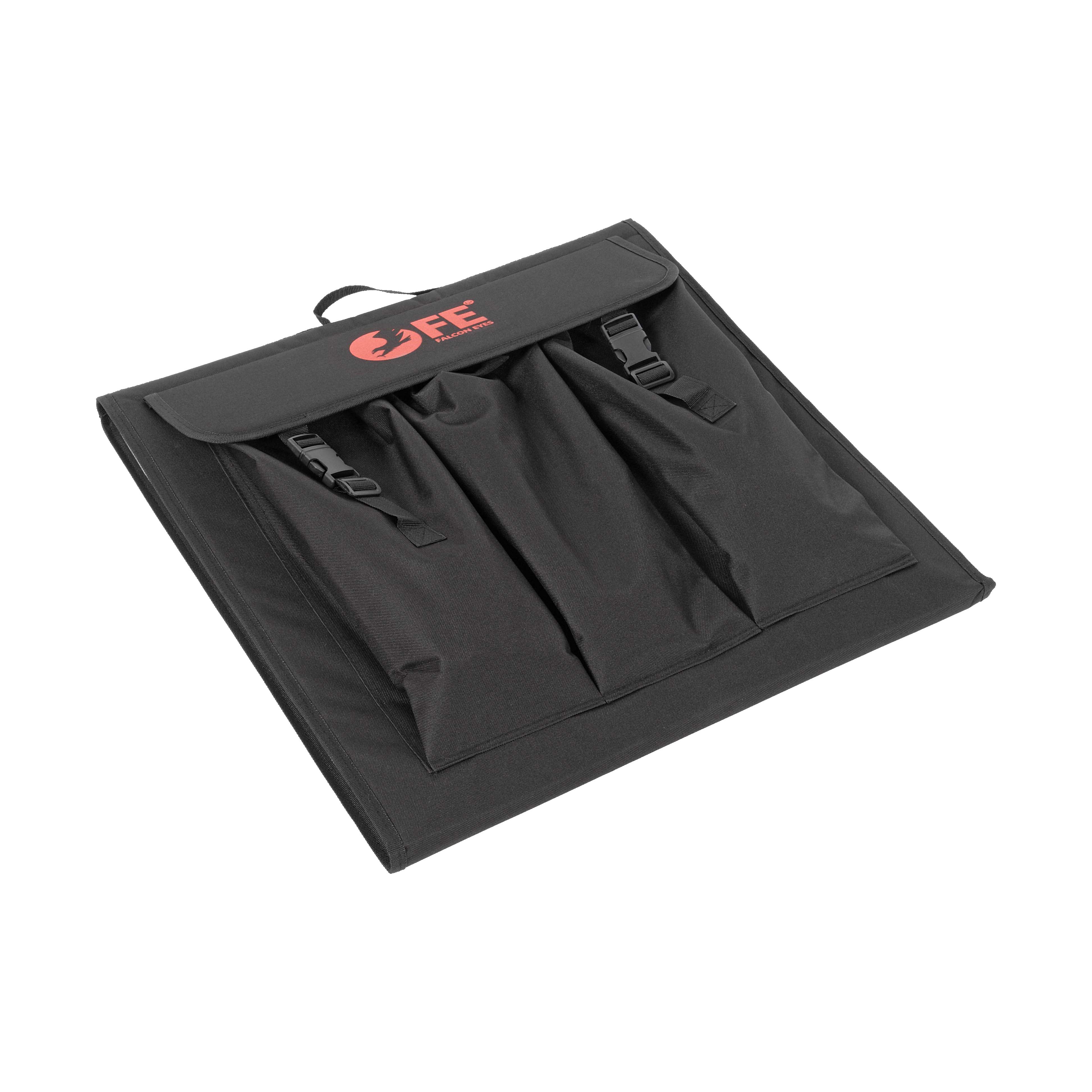 Снаружи фотобокса расположены три кармана, в которых помещается весь комплект. В собранном виде комплект выглядит как портфель с ручкой и весит всего 3 кг.