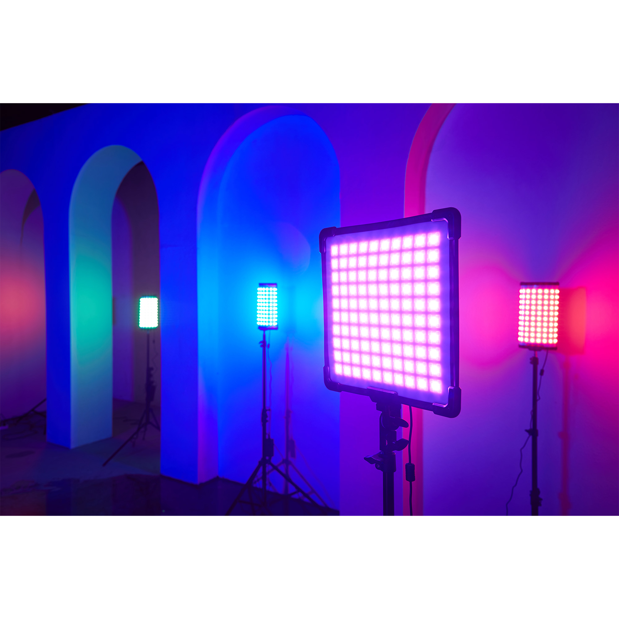 Панель квадратного формата 30х30 см с яркостью освещения на расстоянии 0,5 м до 8380 лк может использоваться в качестве рисующего, заполняющего, контрового или фонового источника света. FH50R с высокой мощностью около 62 Вт удобно применять как в помещении (студии, квартире), так и на улице (выездные фото-видеосъемки).