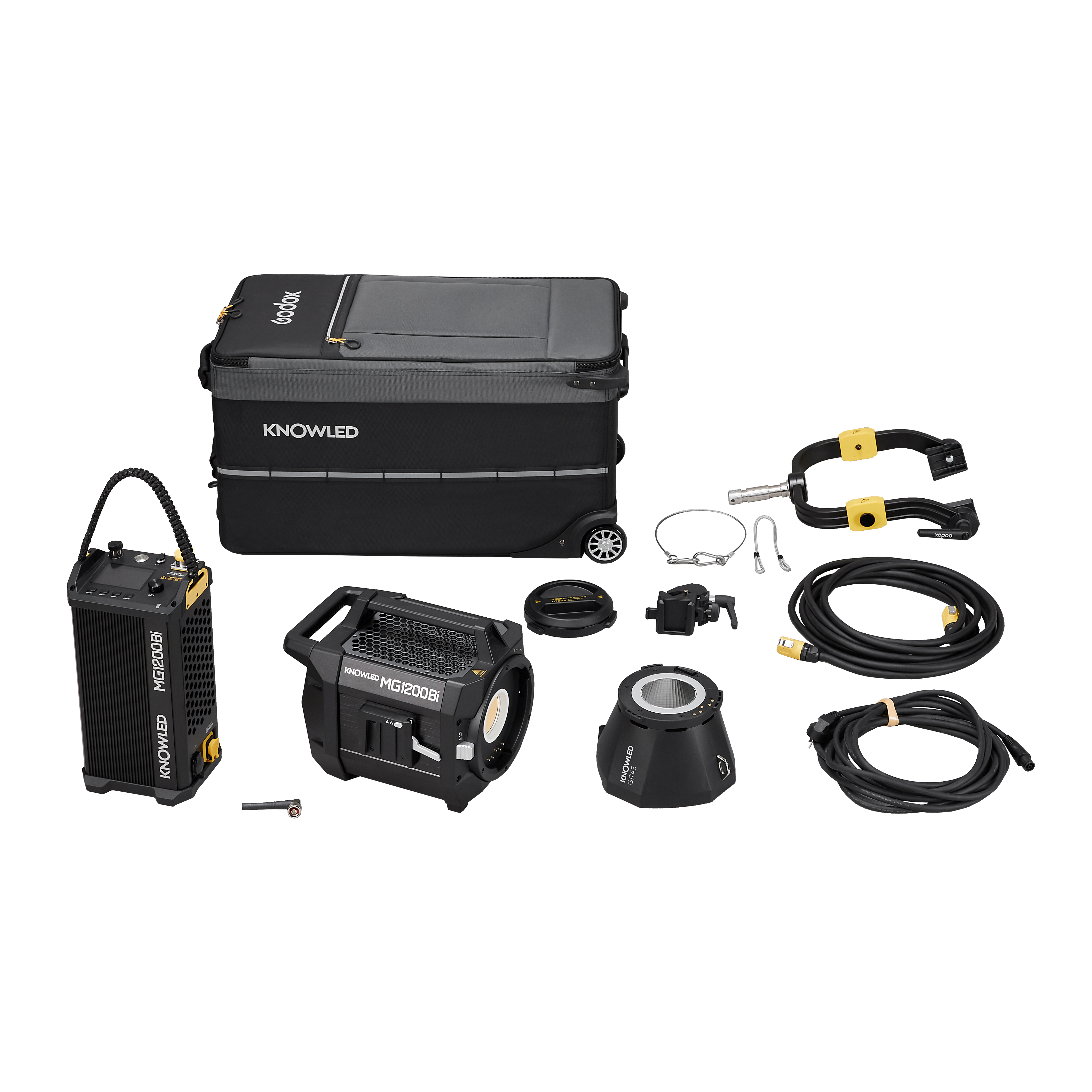 В комплект входит специально разработанный кофр для хранения и транспортировки осветителя, представляющий собой чемодан на колесах. С помощью кофра комплект легко перемещается, как на съемочной площадке, так и за ее пределами.
