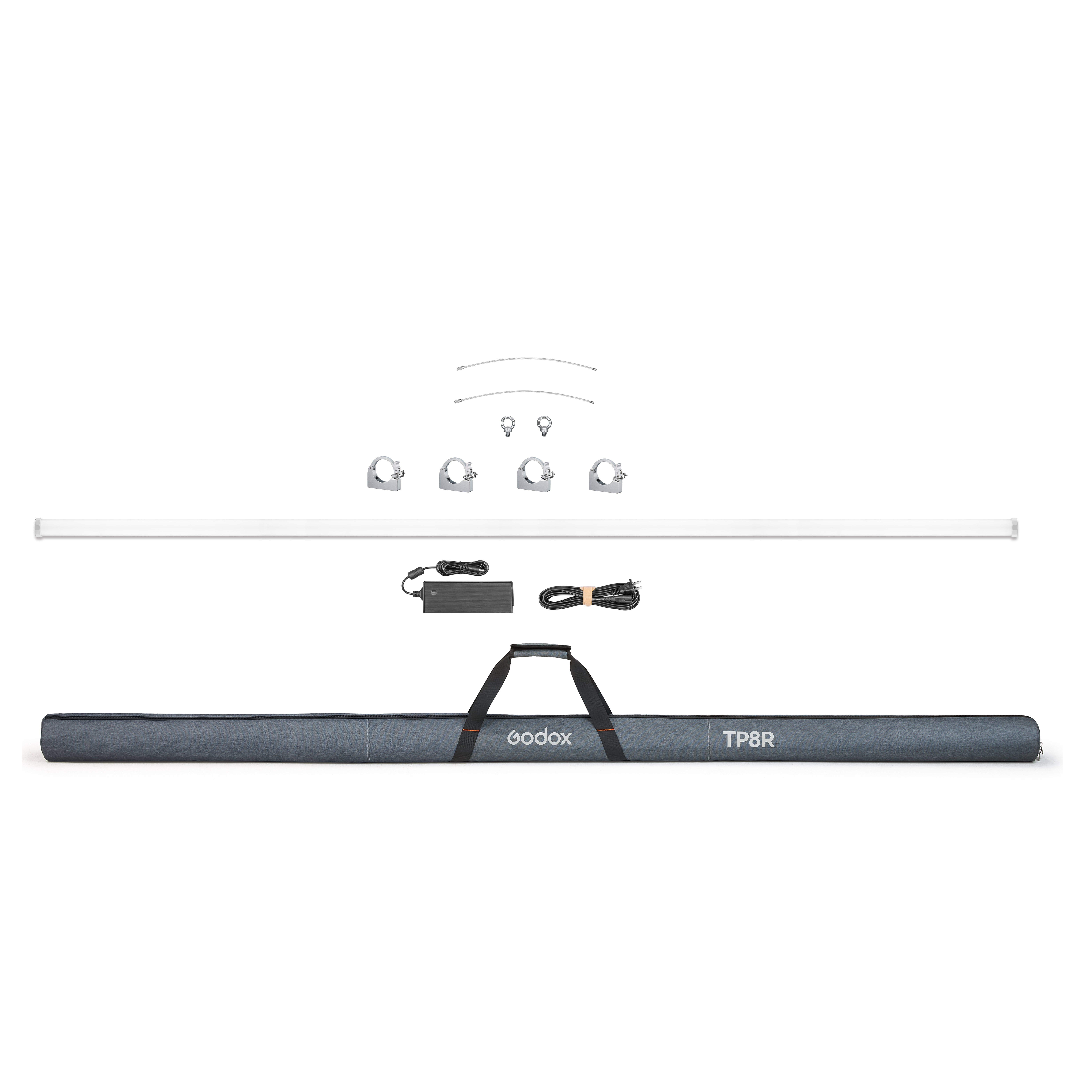Godox Knowled TP8R – это новейшие яркие восьмифутовые трубчатые RGBWW-осветители c 64 группами индивидуально управляемых светодиодов (пикселей). Обладая массой передовых функций, осветители Knowled TP-R отлично подходят для создания профессионального освещения на съемочной площадке в кино и на телевидении, могут быть задействованы в студийных и выездных съемках и т.д.