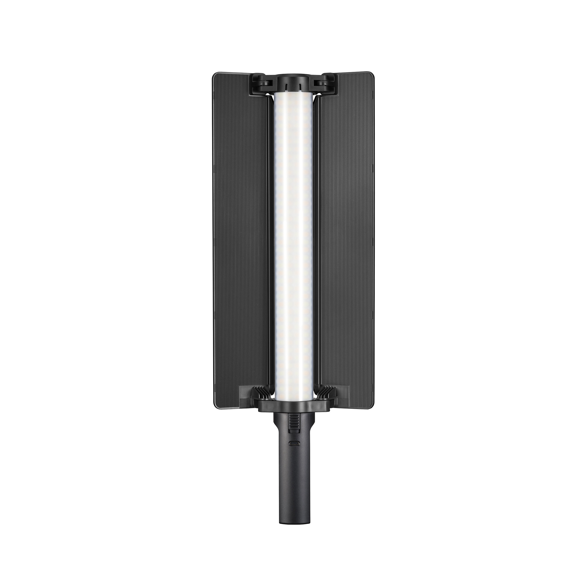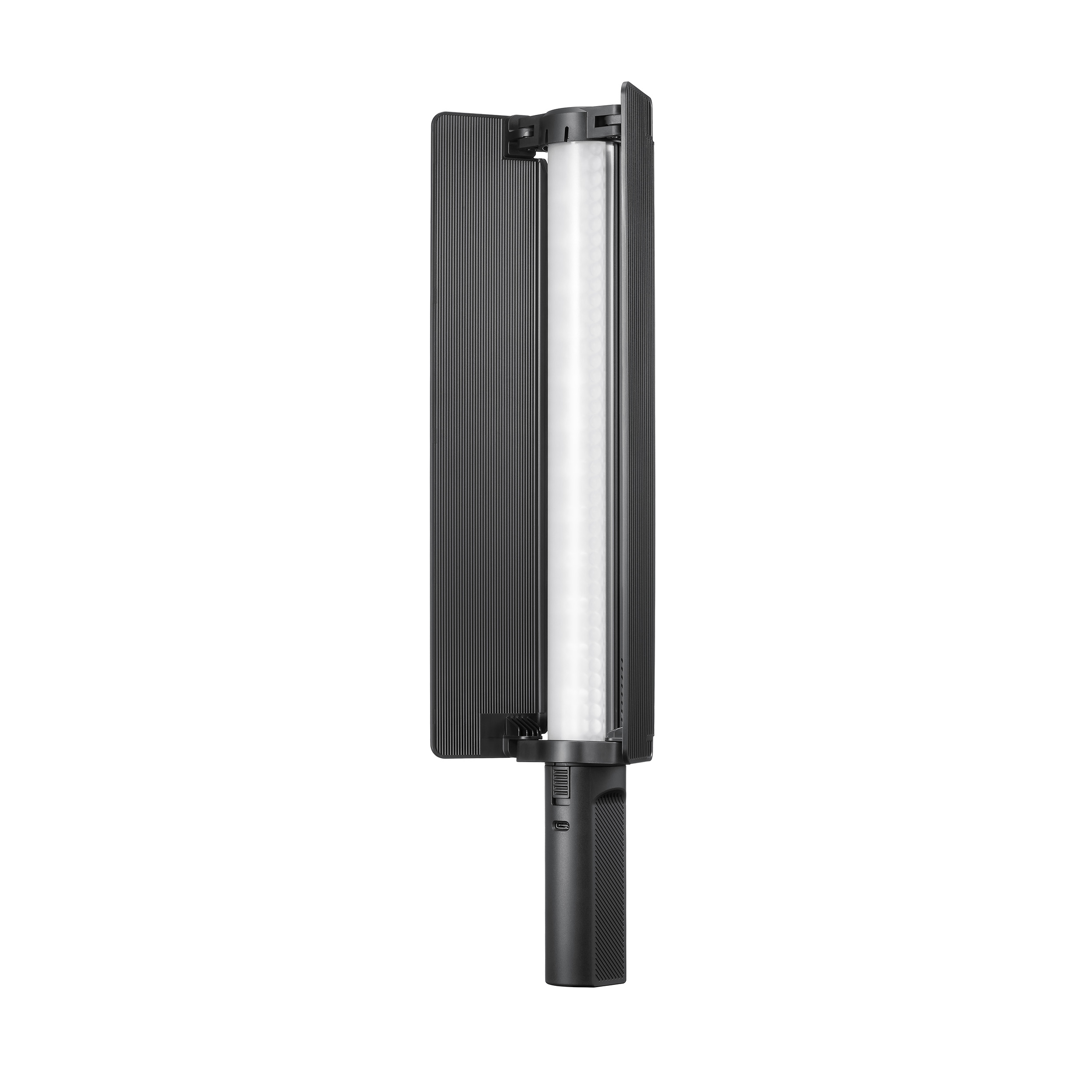 Трубчатый осветитель со встроенным аккумулятором и съемными шторками предназначен для контент-мейкеров, которым необходим мощный, но легкий источник света для съемки в помещении или на улице.