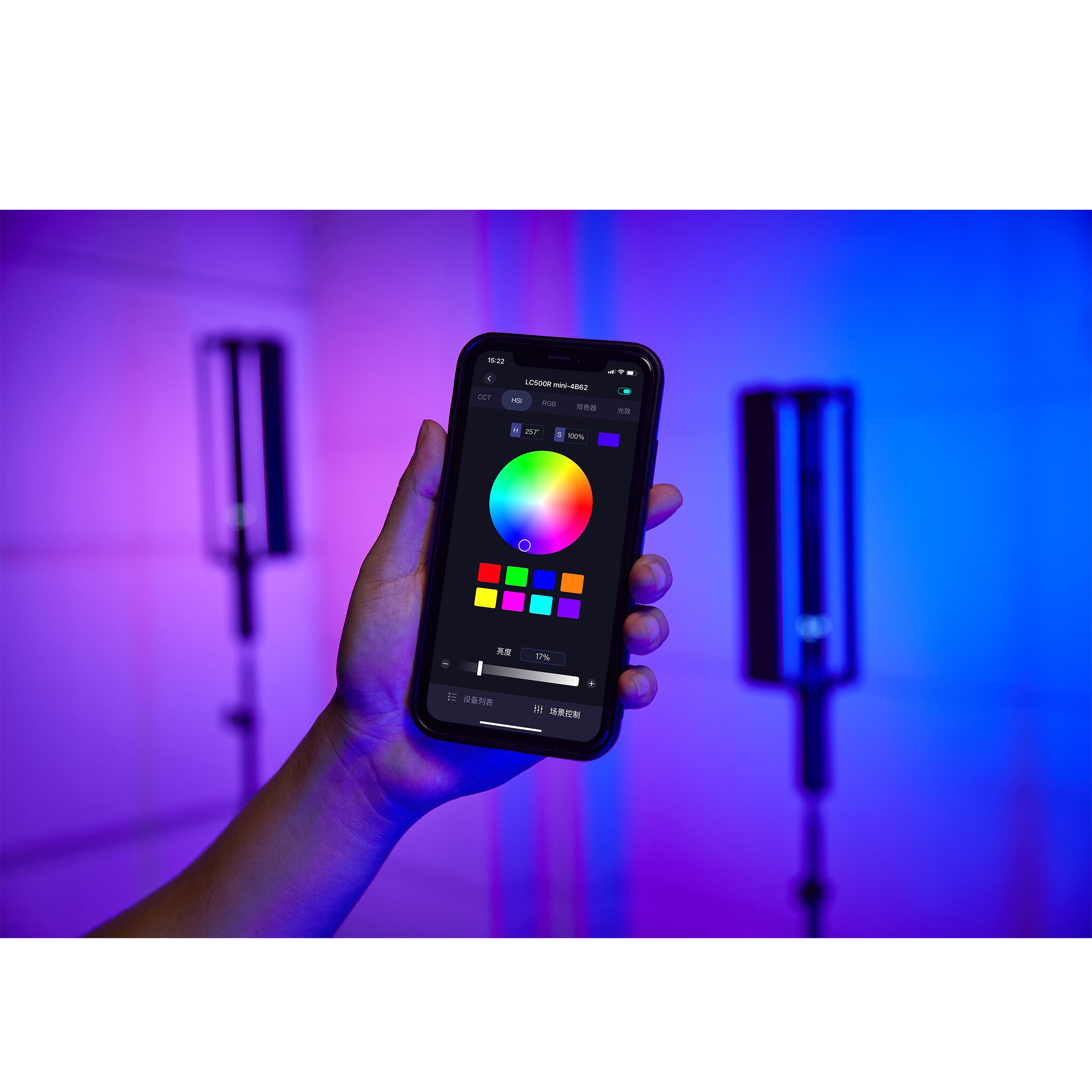 LC500 mini может управляться с помощью интуитивно понятной панели на корпусе устройства, а также дистанционно по Bluetooth через приложение. Совместимость с мобильным приложением Godox Light повышает удобство работы, обеспечивая возможность дистанционно управлять всеми параметрами освещения с помощью смартфона или планшета.