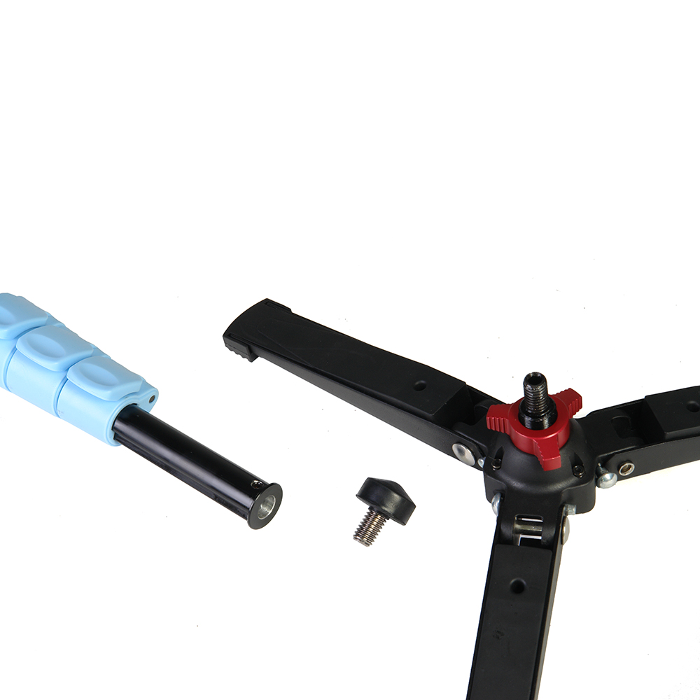 В ситуациях, когда не требуется дополнительная устойчивость или монопод используется только для фотосъемки, раскладывающуюся опору можно снять и установить вместо нее резиновую пятку (входит в комплект), это облегчит общий вес конструкции.
