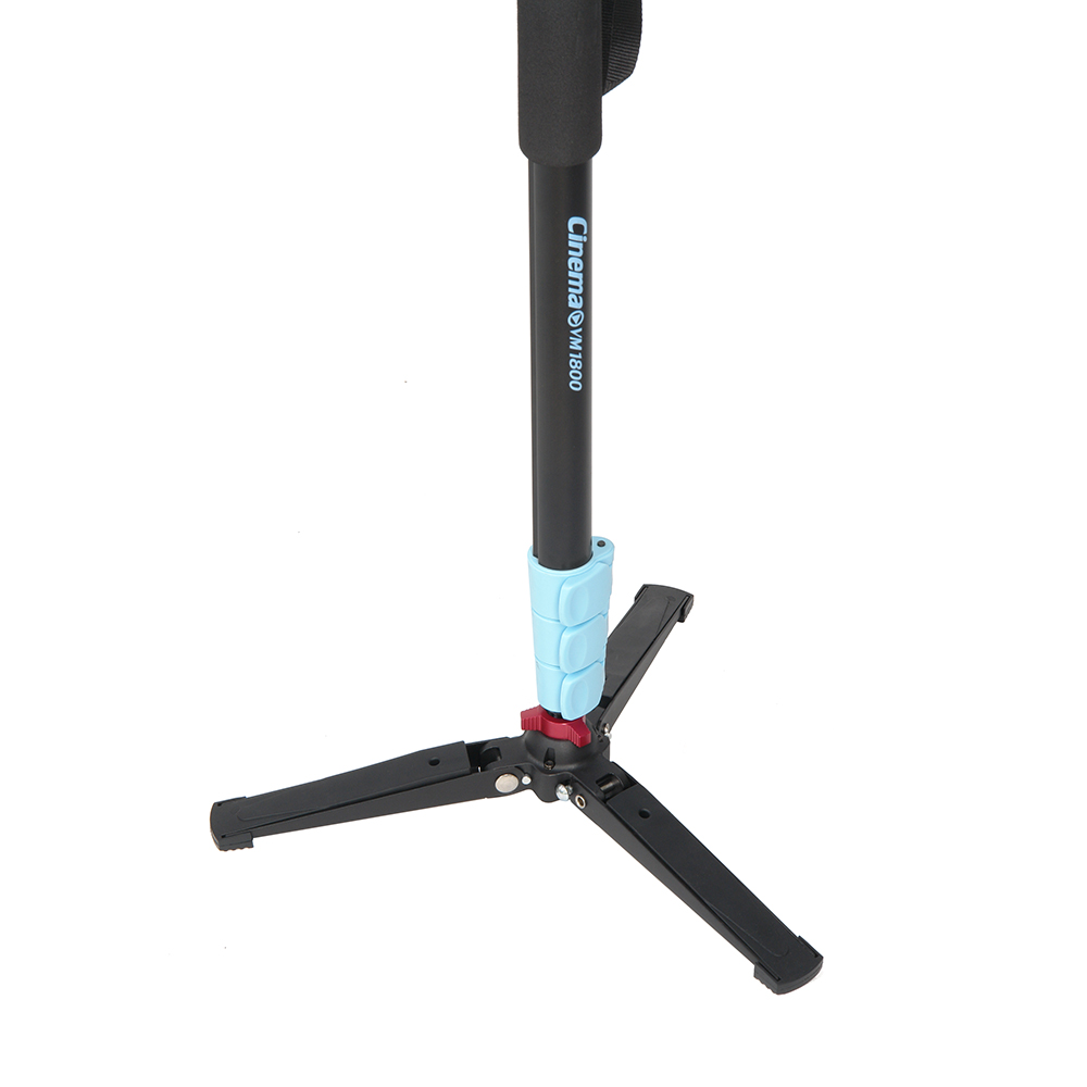 К нижнему основанию монопода крепится опора из трех складывающихся стальных лапок с резиновыми вставками. Благодаря этой опоре монопод надежно устанавливается на любой поверхности. Опора на шаровом основании позволяет наклонять монопод под углом до 15˚, а специальная гайка поможет ограничить угол наклона до нужной величины.