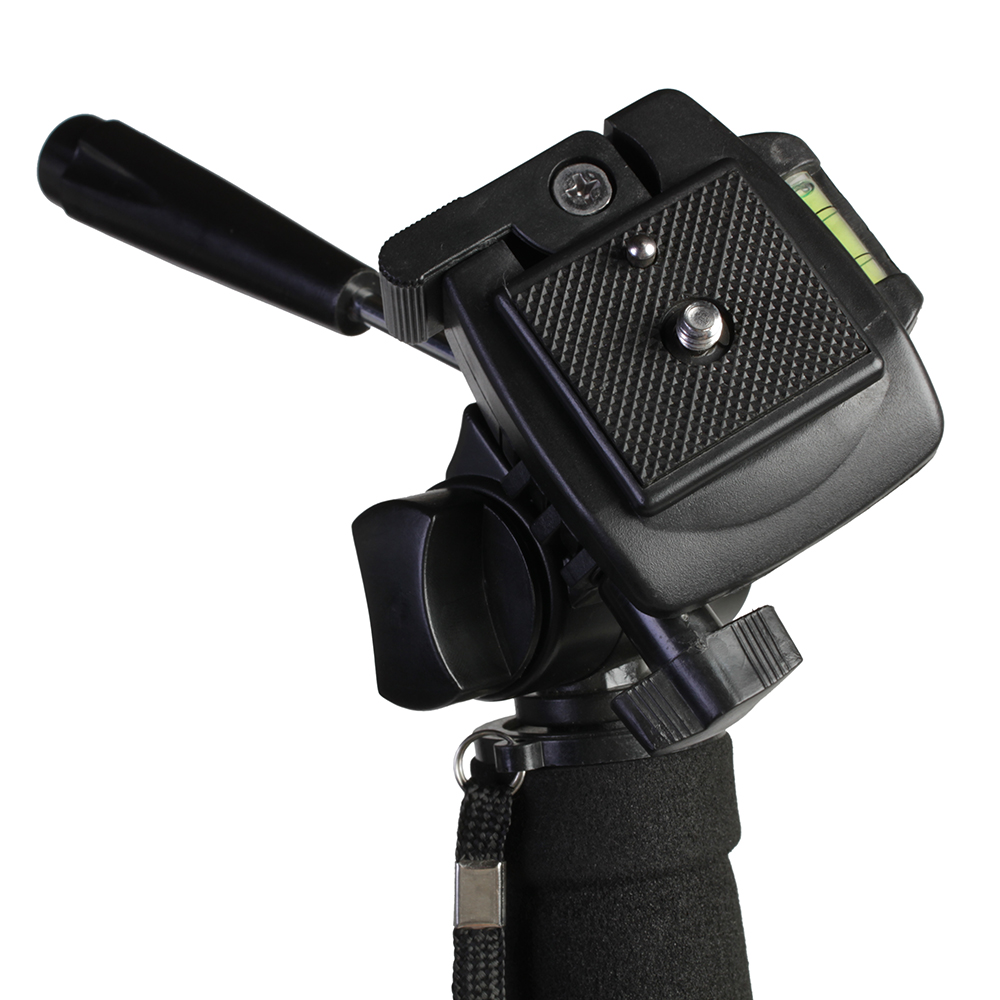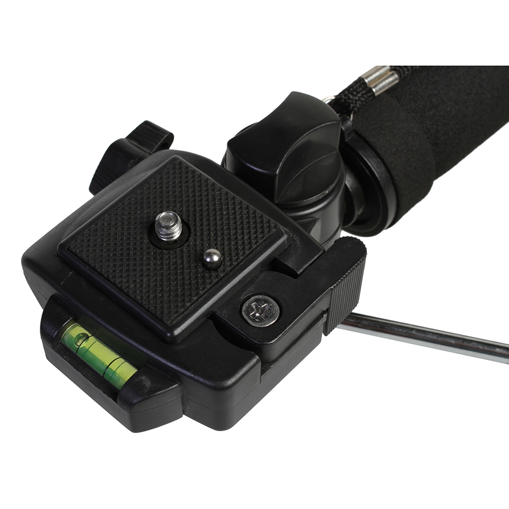 Монопод оборудован несменной 3D головкой с быстросъемной площадкой и пузырьковым уровнем. Четыре секции монопода обеспечивают широкий диапазон регулировки рабочей высоты. Максимальная высота в рабочем состоянии 180 см. В сложенном виде — 63 см. Большой диаметр секций (диаметр верхней секции 27 мм) и надежные цанговые зажимы успешно гасят передающиеся по корпусу вибрации и сохраняют прочность конструкции. Металлические зажимы с фторпластовыми прокладками обеспечивают долговечность работы и прочную фиксацию секций. Монопод изготовлен из