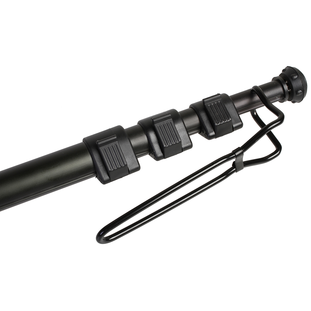 Снизу находится резиновый наконечник с выкручиваемым шипом — монопод одинаково удобно можно использовать, как на лакированной поверхности, так и на рыхлой земле. Монопод снабжается упором для ноги, становясь на который, достигается дополнительная устойчивость и фиксация. Рукоятка из вспененного материала служит для комфортной работы при отрицательных температурах и прочного удерживания без проскальзывания. Монопод снабжен ремешком для фиксации на руке, это предупредит падение монопода с камерой, если фотограф случайно выпустит его из рук. Монопод комплектуется чехлом на молнии.
