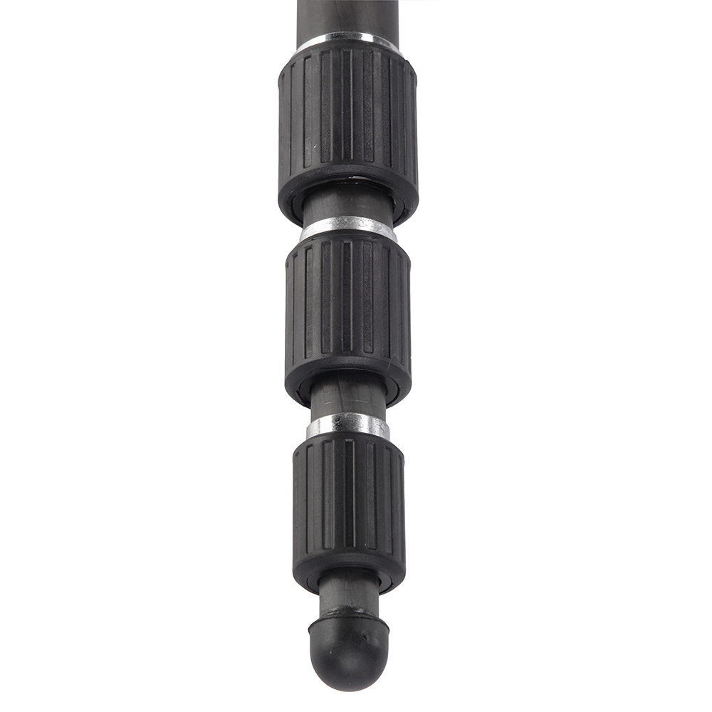 Возможна установка штативной головы с установочной резьбой 3/8" или 1/4", диаметр площадки под штативную головку — 50 мм. Рекомендуется устанавливать на монопод штативные шаровые головы серии BH. Четыре секции монопода обеспечивают широкий диапазон регулировки рабочей высоты. Большой диаметр секций (диаметр верхней секции 25 мм) и надежные цанговые зажимы успешно гасят передающиеся по корпусу вибрации и сохраняют прочность конструкции. Металлические зажимы с фторопластовыми прокладками обеспечивают долговечность работы и прочную фиксацию секций. Максимальная высота в рабочем состоянии 145 см. Достаточно компактный в сложенном виде — 48,5 см. Монопод изготовлен из карбона и весит всего 0,35 кг. Карбоновый монопод обладает рядом уникальных свойств — он прочнее и долговечнее алюминиевых аналогов и при этом обладает меньшей массой.