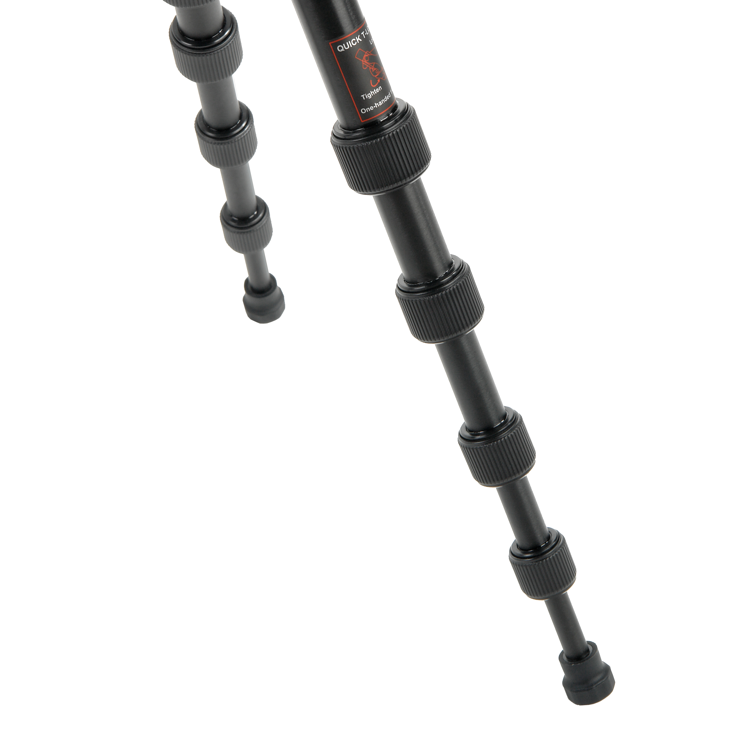 Селекторы угла расстановки ног позволяют зафиксировать каждую ногу под любым из трех заданных углов независимо друг от друга, это обеспечивает большую гибкость для позиционирования цифровой камеры в сложных условиях. Фиксация ног штатива под разным углом дает возможность использовать в качестве опоры ступени, камни и другие сложные поверхности, а также проводить съемку с нижней точки. Цанговые зажимы надежно соединяют между собой 5 секций ног.