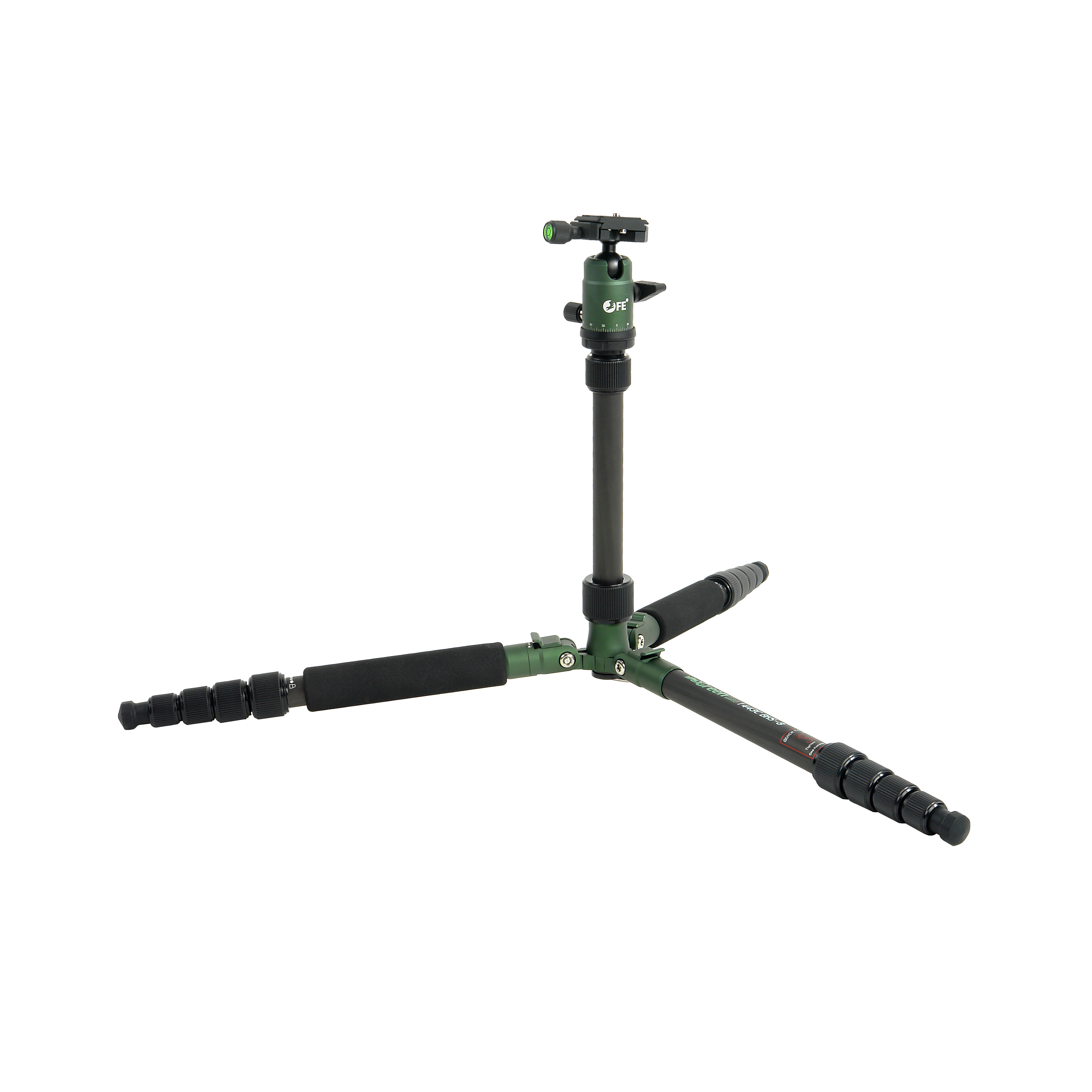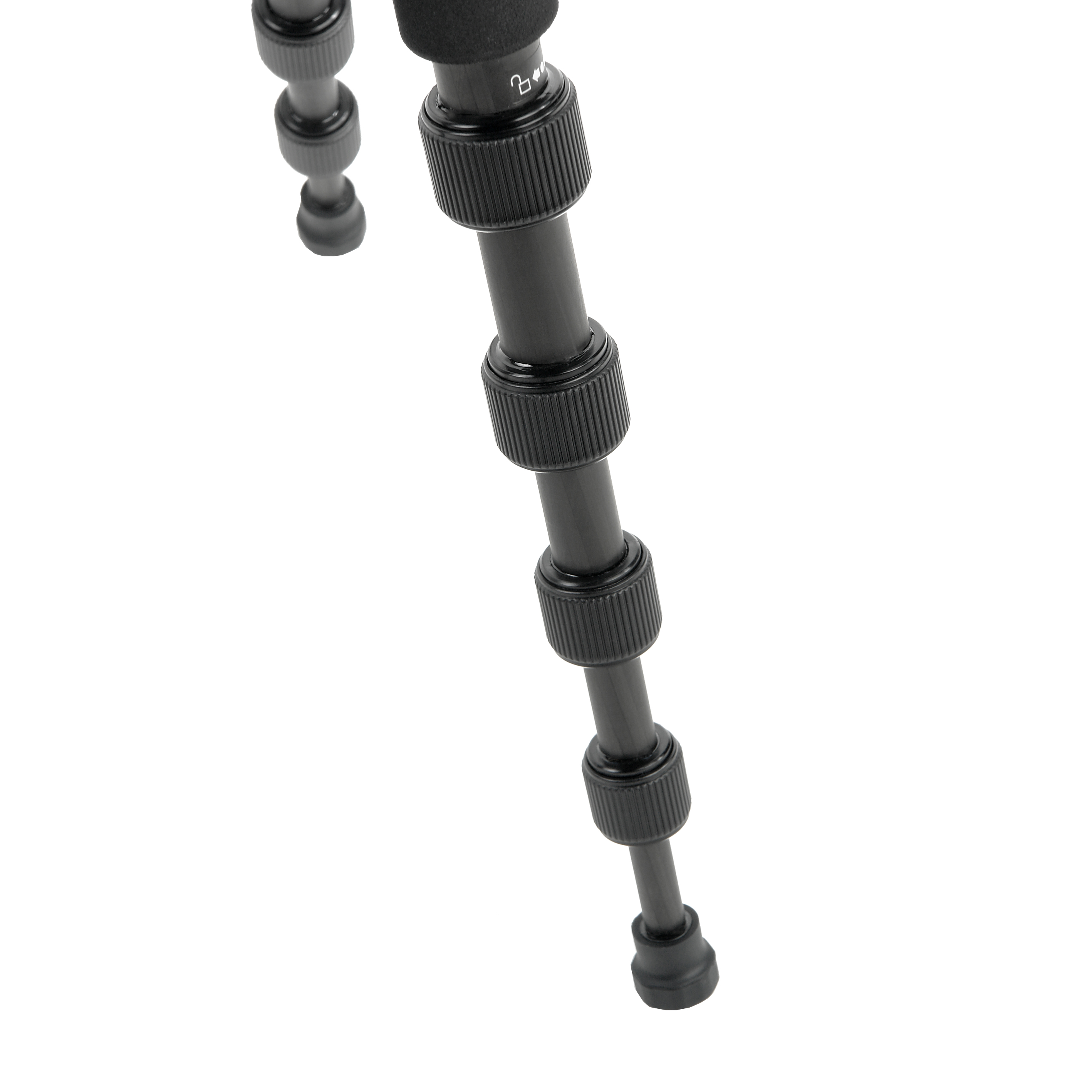 Селекторы угла расстановки ног позволяют зафиксировать каждую ногу под любым из трех заданных углов независимо друг от друга, это обеспечивает большую гибкость для позиционирования цифровой камеры в сложных условиях. Фиксация ног штатива под разным углом дает возможность использовать в качестве опоры ступени, камни и другие сложные поверхности, а также проводить съемку с нижней точки. Цанговые зажимы надежно соединяют между собой 5 секций ног.