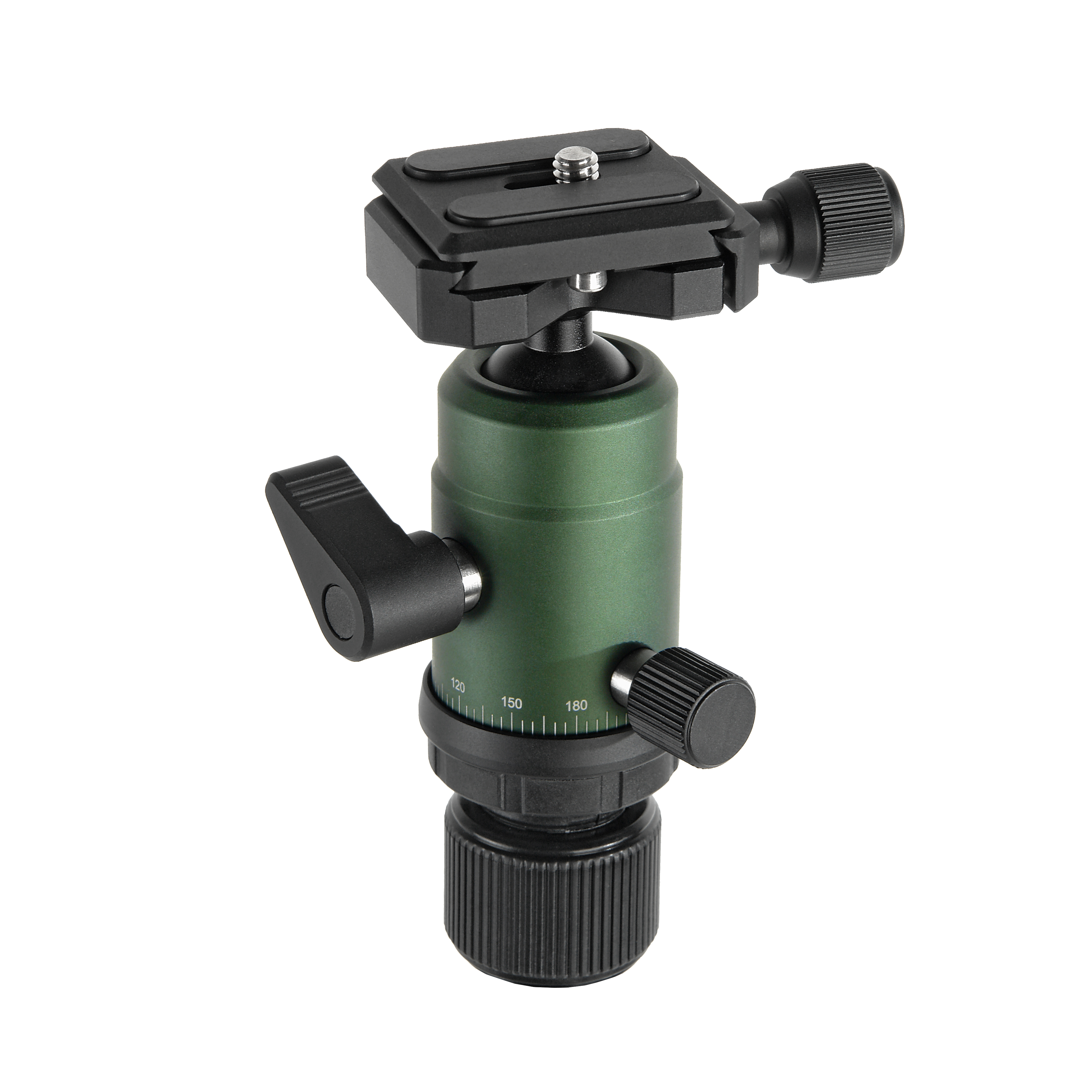 Шаровая головка отличается высокой прочностью и прецизионным исполнением. Все движения площадки с камерой происходят плавно и без рывков. Боковой паз на корпусе головки обеспечивает возможность наклона камеры на 90° для перевода между горизонтальным и вертикальным форматами. Быстросъемная площадка оборудована механизмом безопасности, который предотвращает падение камеры при случайном ослаблении фиксатора. Выравнивающий пузырьковый уровень позволяет выставить горизонтальное положение камеры.