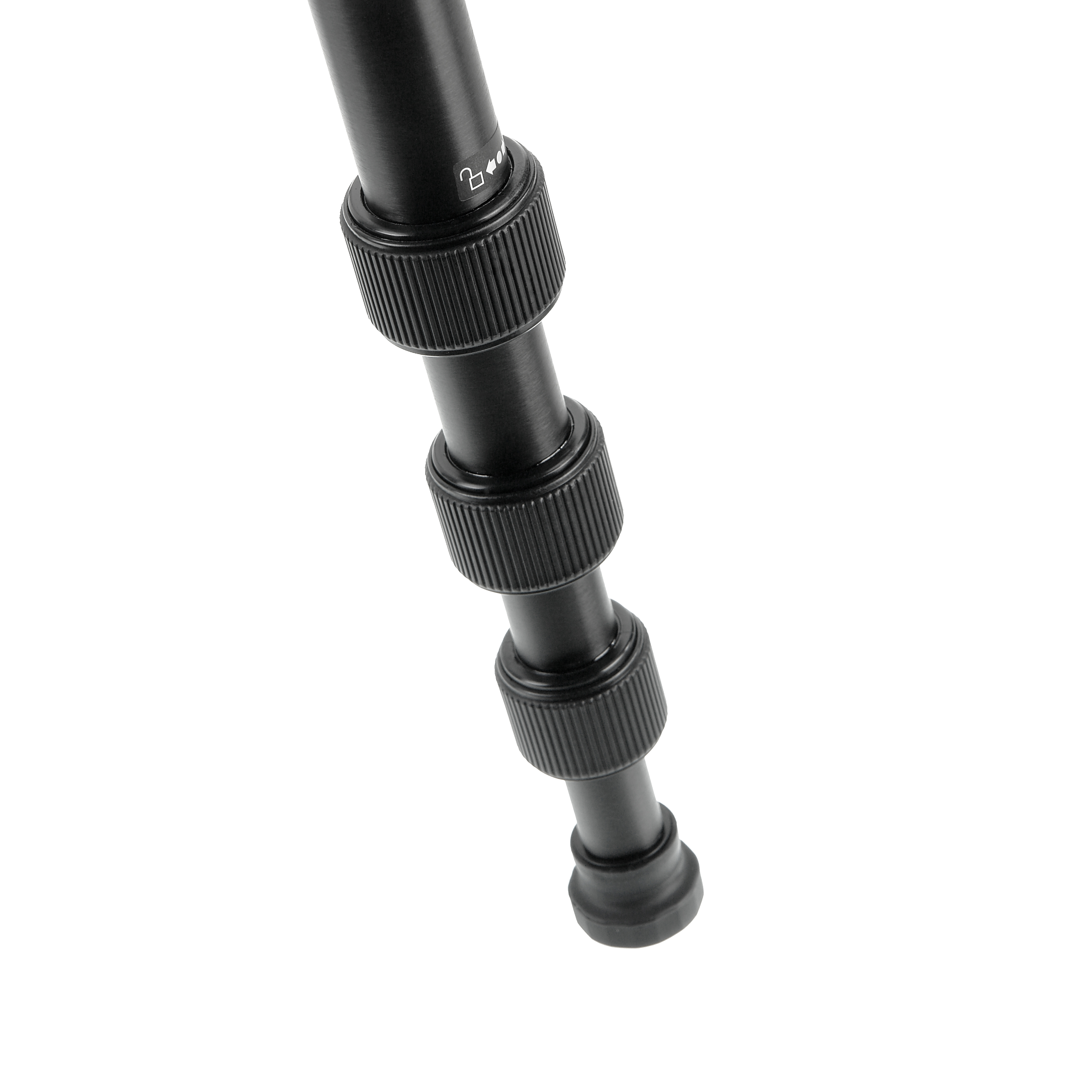 Селекторы угла расстановки ног позволяют зафиксировать каждую ногу под любым из трех заданных углов независимо друг от друга, это обеспечивает большую гибкость для позиционирования цифровой камеры в сложных условиях. Фиксация ног штатива под разным углом дает возможность использовать в качестве опоры ступени, камни и другие сложные поверхности, а также проводить съемку с нижней точки. Цанговые зажимы надежно соединяют между собой 4 секции ног.