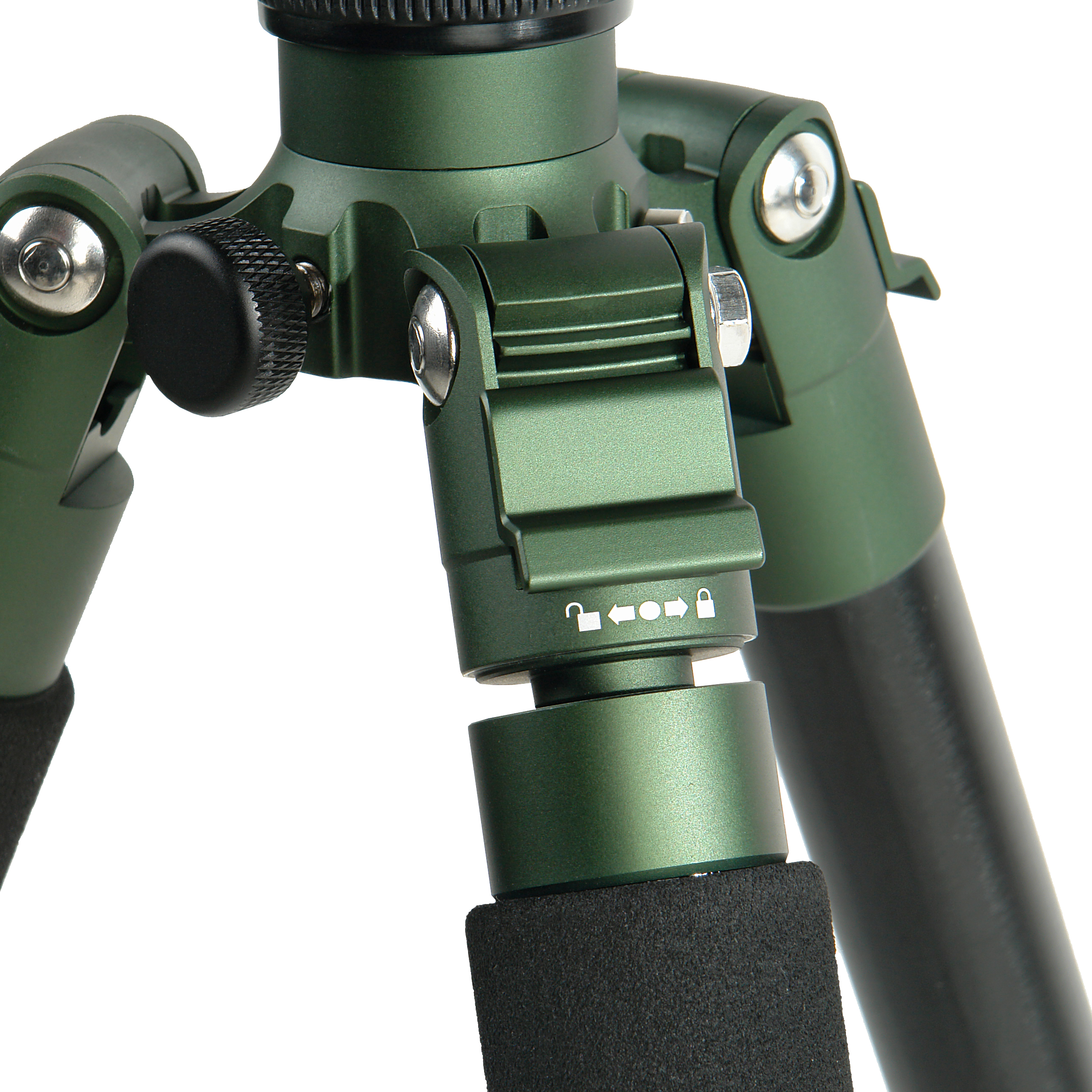 Селекторы угла расстановки ног позволяют зафиксировать каждую ногу под любым из трех заданных углов независимо друг от друга, это обеспечивает большую гибкость для позиционирования цифровой камеры в сложных условиях. Фиксация ног штатива под разным углом дает возможность использовать в качестве опоры ступени, камни и другие сложные поверхности, а также проводить съемку с нижней точки. Цанговые зажимы надежно соединяют между собой 4 секции ног.