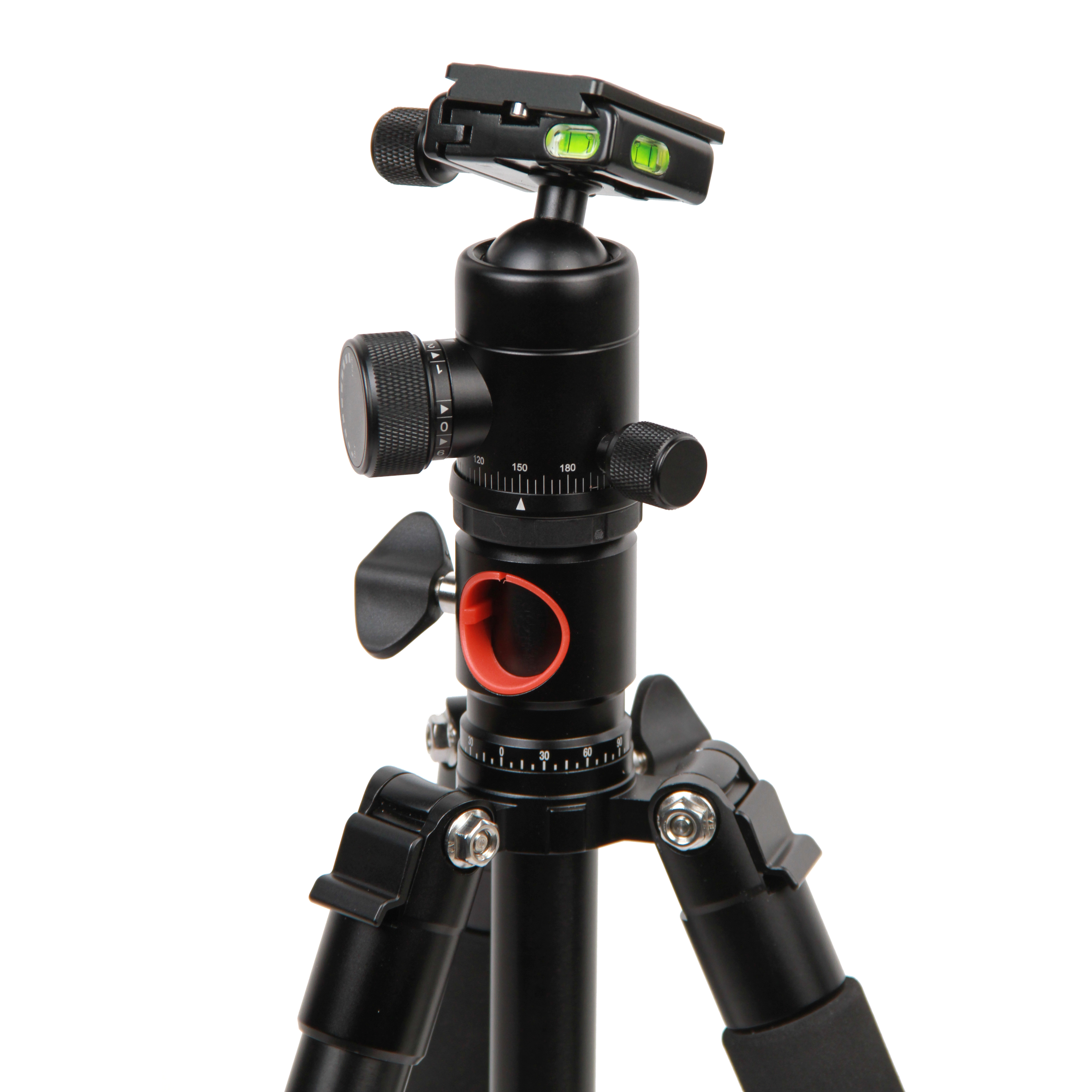Центральная колонна оснащается шаровой головкой с тремя пузырьковыми уровнями для выравнивания камеры, быстросъемной штативной площадкой и предохранителем, предотвращающим ее случайное выпадение вместе с камерой во время установки.