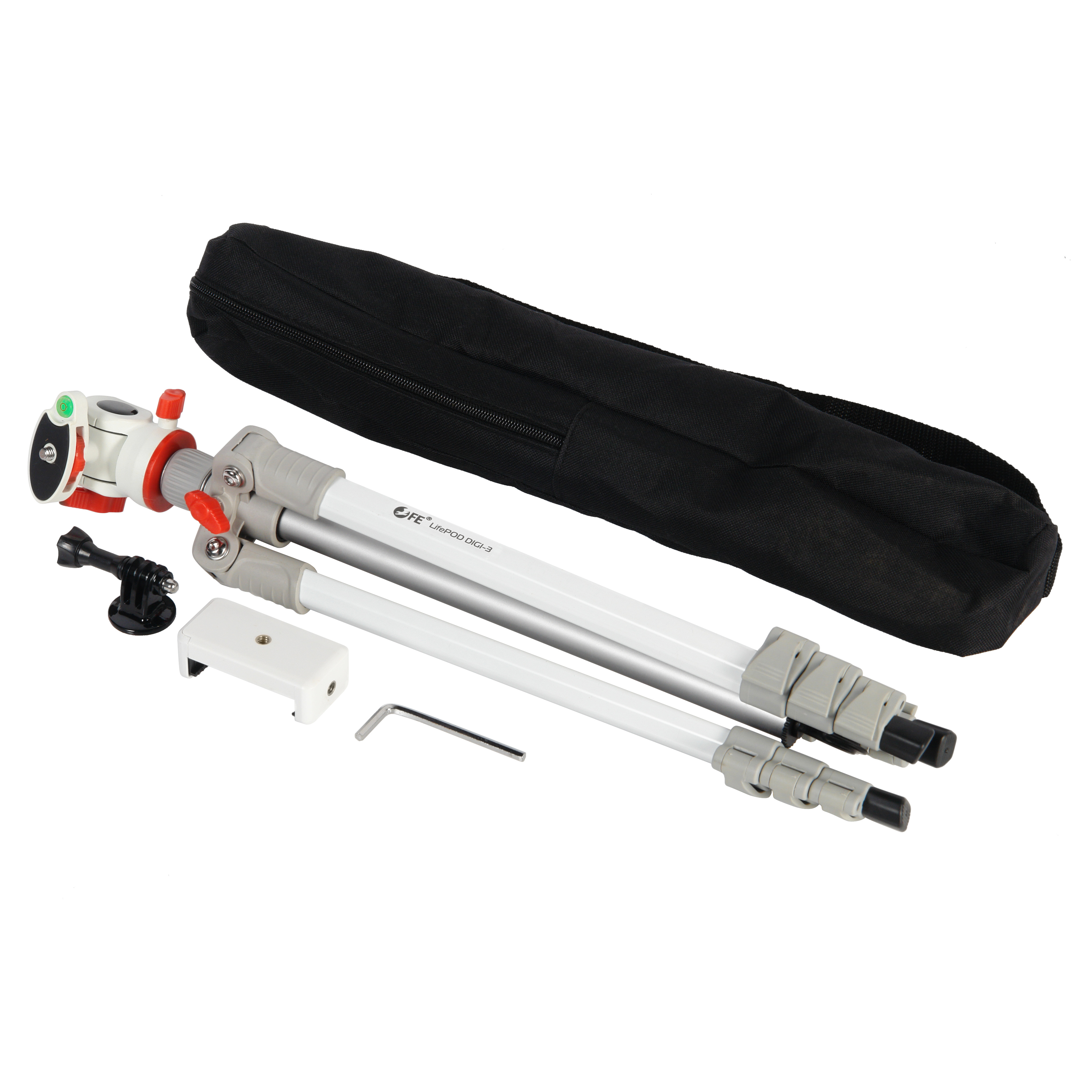 Штатив Falcon Eyes LifePOD DIGI-3 – легкий travel-штатив с рабочей высотой от 47 до 158 см ( довольно компактный в сложенном виде -всего 45 см). На штатив устанавливаются цифровые камеры весом до 2.5 кг, а также смартфоны или камеры GoPro (стандартные адаптеры в комплекте).